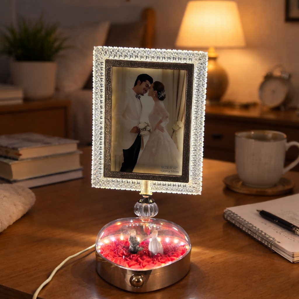 led photo frame lamp, crystal photo frame, couple gift item, romantic night lamp, anniversary gift, wedding gift decor, bedroom table decor, led picture frame, decorative lamp gift, photo display lamp, love gift item, home decor light