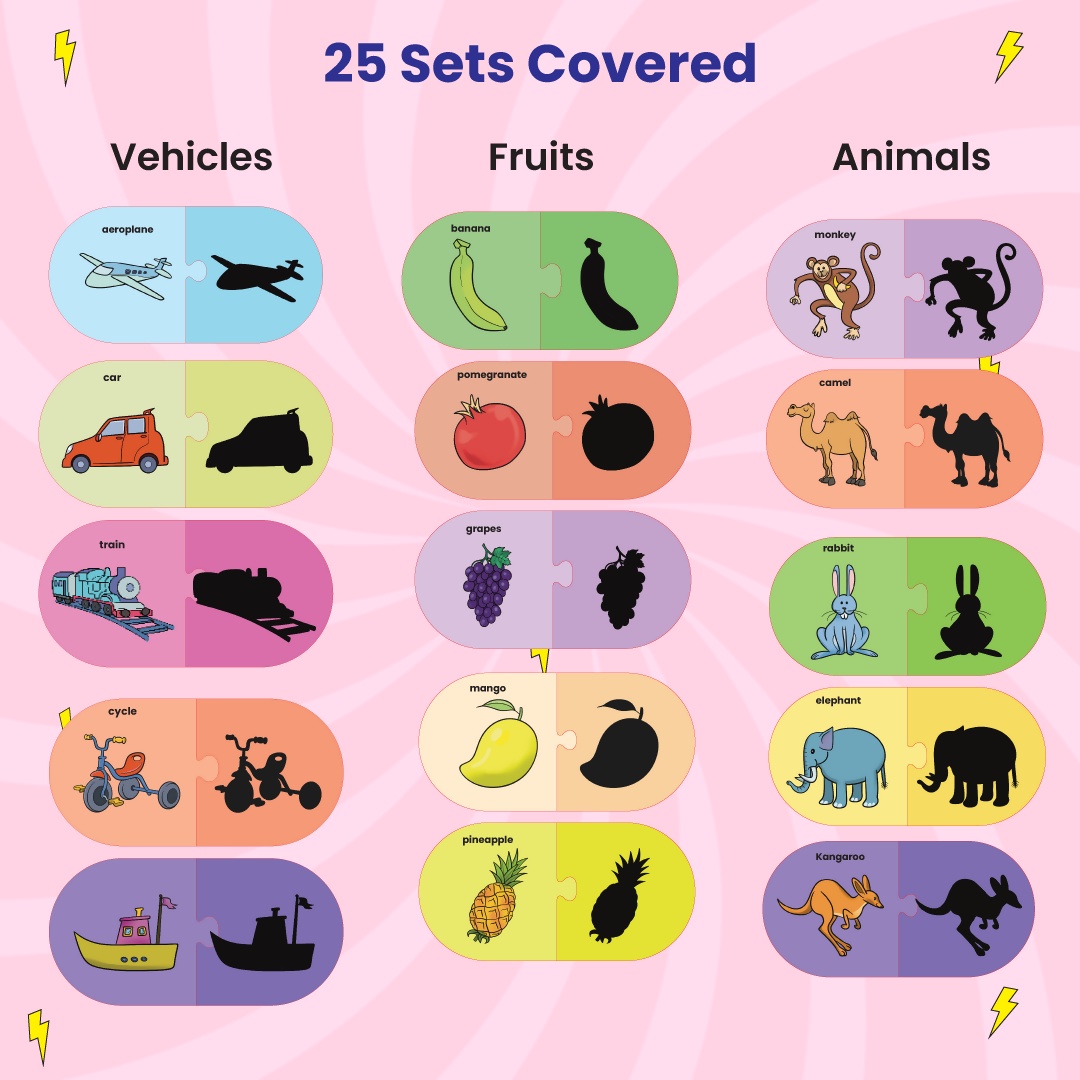 Shadow Matching Puzzle - Ages 3+ (50 cardboard puzzle pieces) Find & Match series