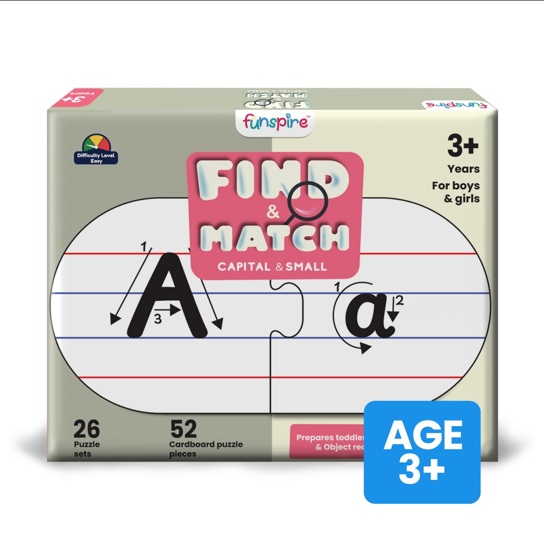 Capital and Small Letter Matching Puzzle - Ages 3+ (52 cardboard puzzle pieces) Find & Match series