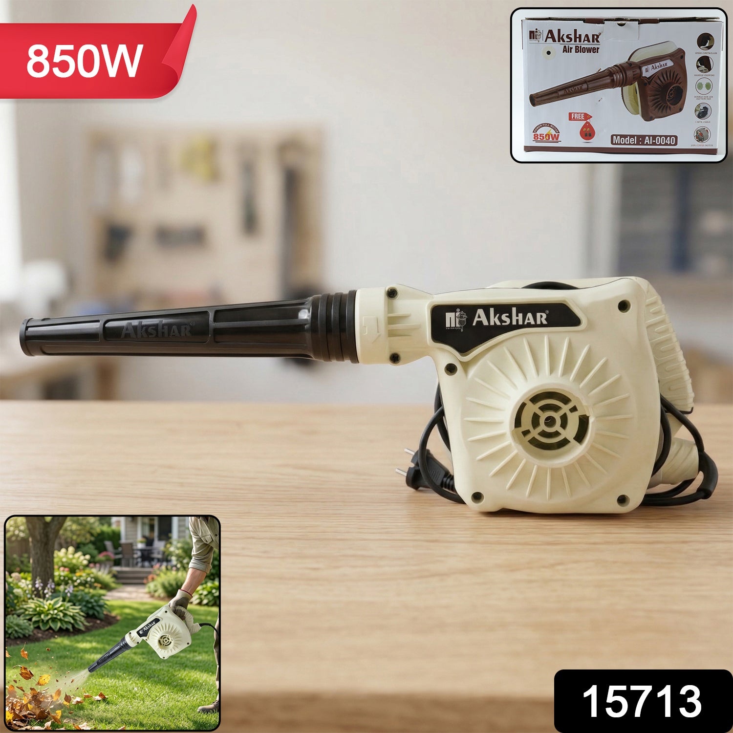 akshar electric air blower AI0040 850W, high power dust cleaning machine, strong air flow electric blower, computer cleaning air blower, home office workshop dust blower, garden leaf blowing electric blower, powerful portable air blower 850W, multi purpose dust and leaf blower, electric blower for electronics and furniture, heavy duty air blower for home and workshop, compact high speed air blower, professional cleaning blower machine
