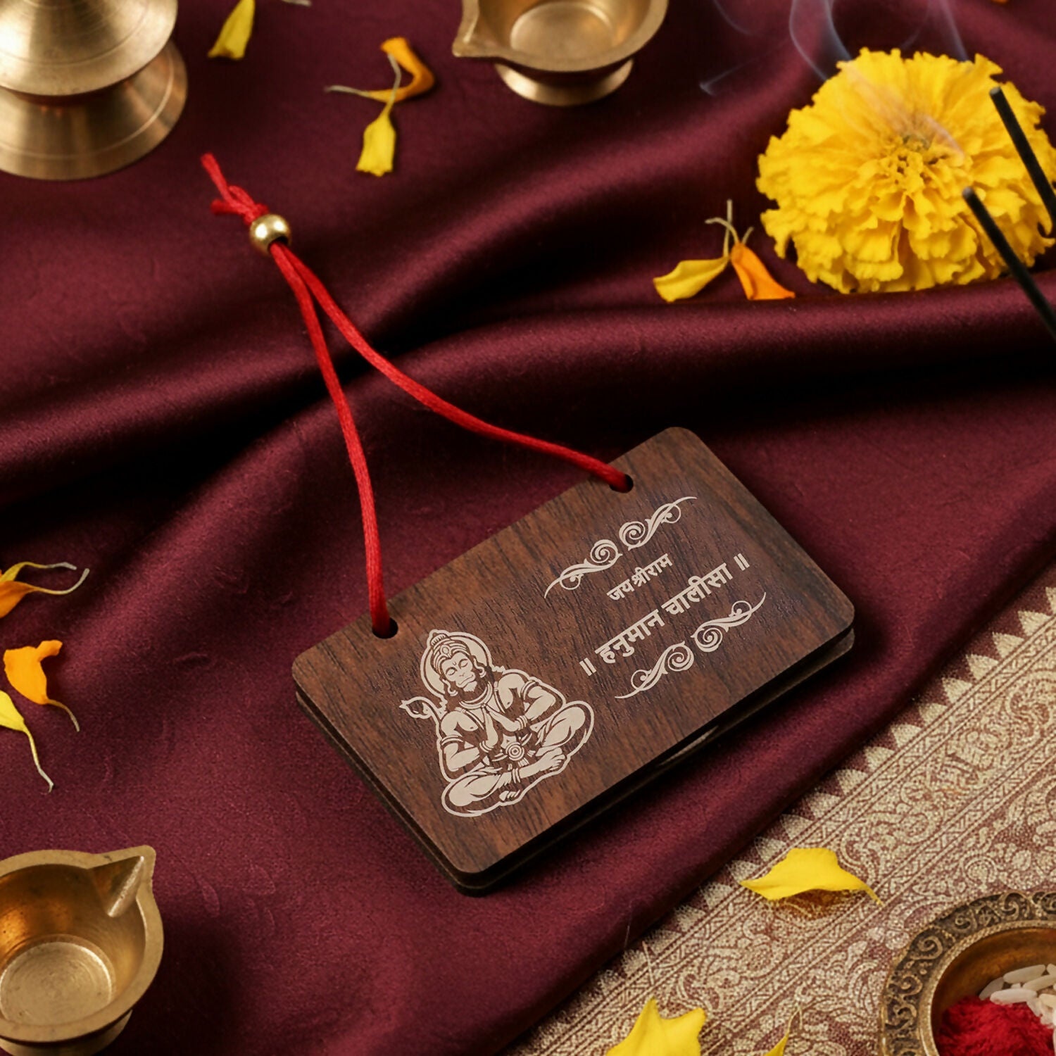 Premium wooden finish with detailed engraved Hanuman Chalisa text