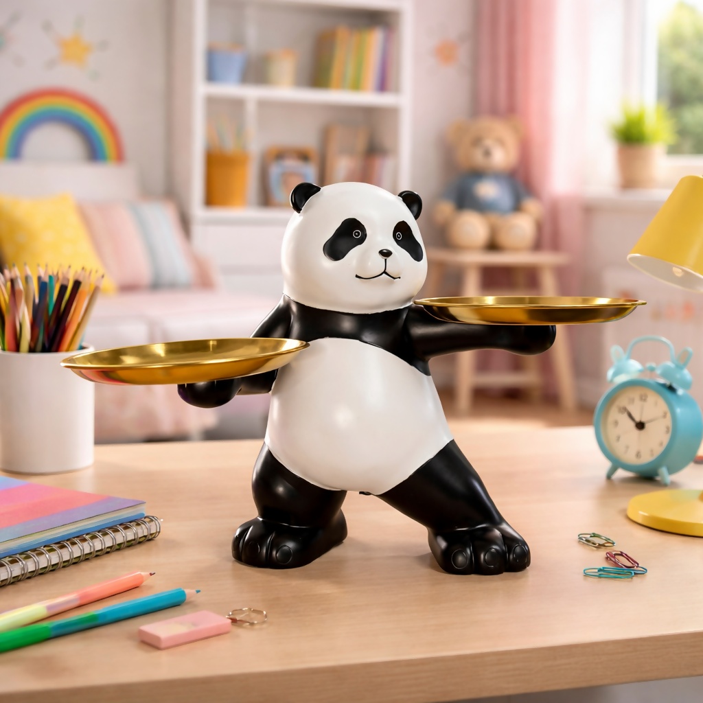Add a fun and functional touch to your space with this adorable panda tray holder. Designed with a cute panda figure holding two trays, this piece is perfect for serving snacks, holding keys, jewelry, or small essentials. Its sturdy build and eye-catching design make it ideal for home décor, office desks, kids’ rooms, and gifting. A perfect blend of utility and decoration that enhances any setting.