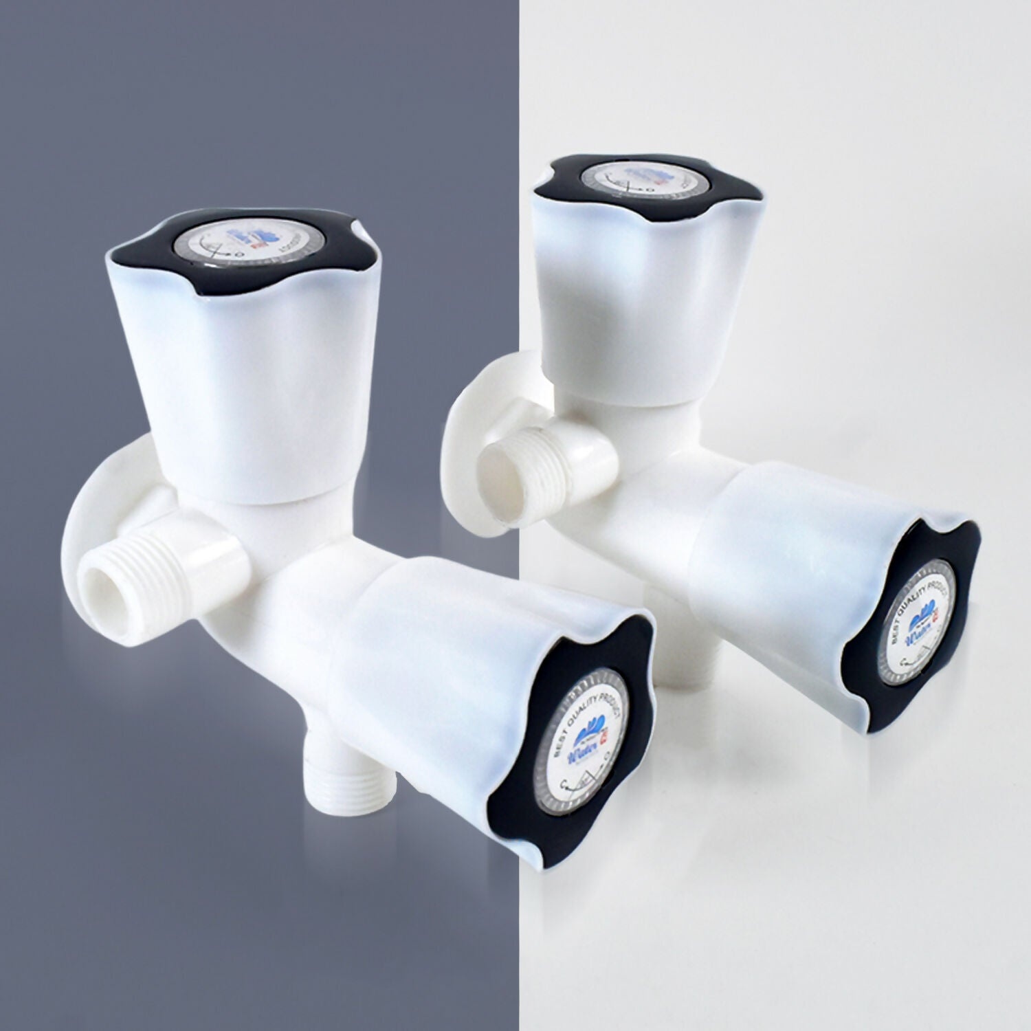 2-in-1 Plastic Bib Cock Water Tap Set with Dual Outlet & Double Knob – Wall Mounted ABS Faucet for Bathroom, Washing Machine, and Utility Use – Leak-Proof, Rust-Free Multipurpose Water Divider Tap (Set of 2 Pcs)