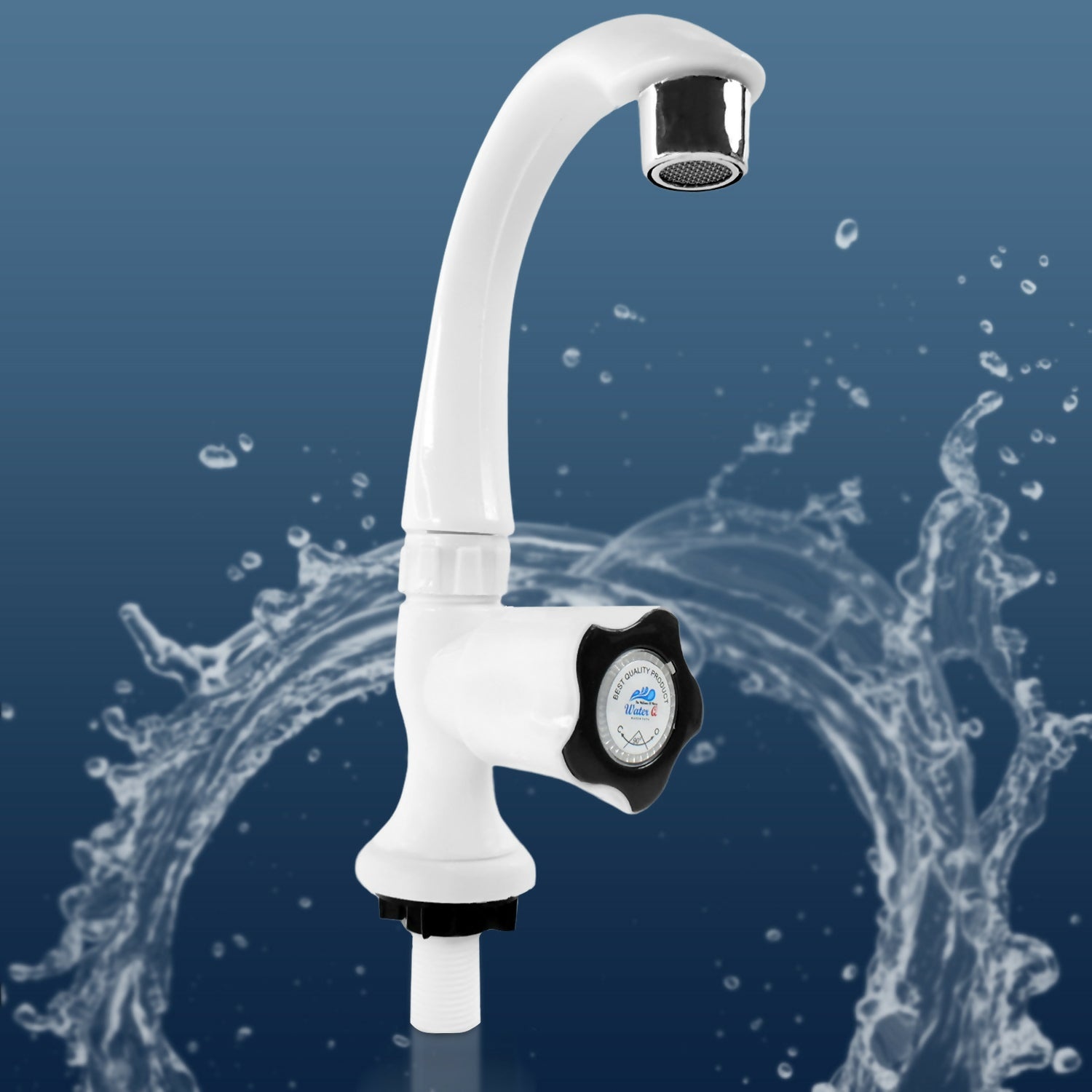 Upgrade your sink area with this sleek and functional Plastic Pillar Cock Tap with Long Curved Neck, designed for table-top or counter installations. Made from durable ABS plastic, this faucet features a stylish chrome tip, a smooth-turn control knob, and a curved flow neck that gives it both reach and elegance. Ideal for use in kitchens, wash basins, and utility zones, this tap offers leak-free performance, resistance to rust and stains, and long-term reliability, all while being easy to install and maintain
