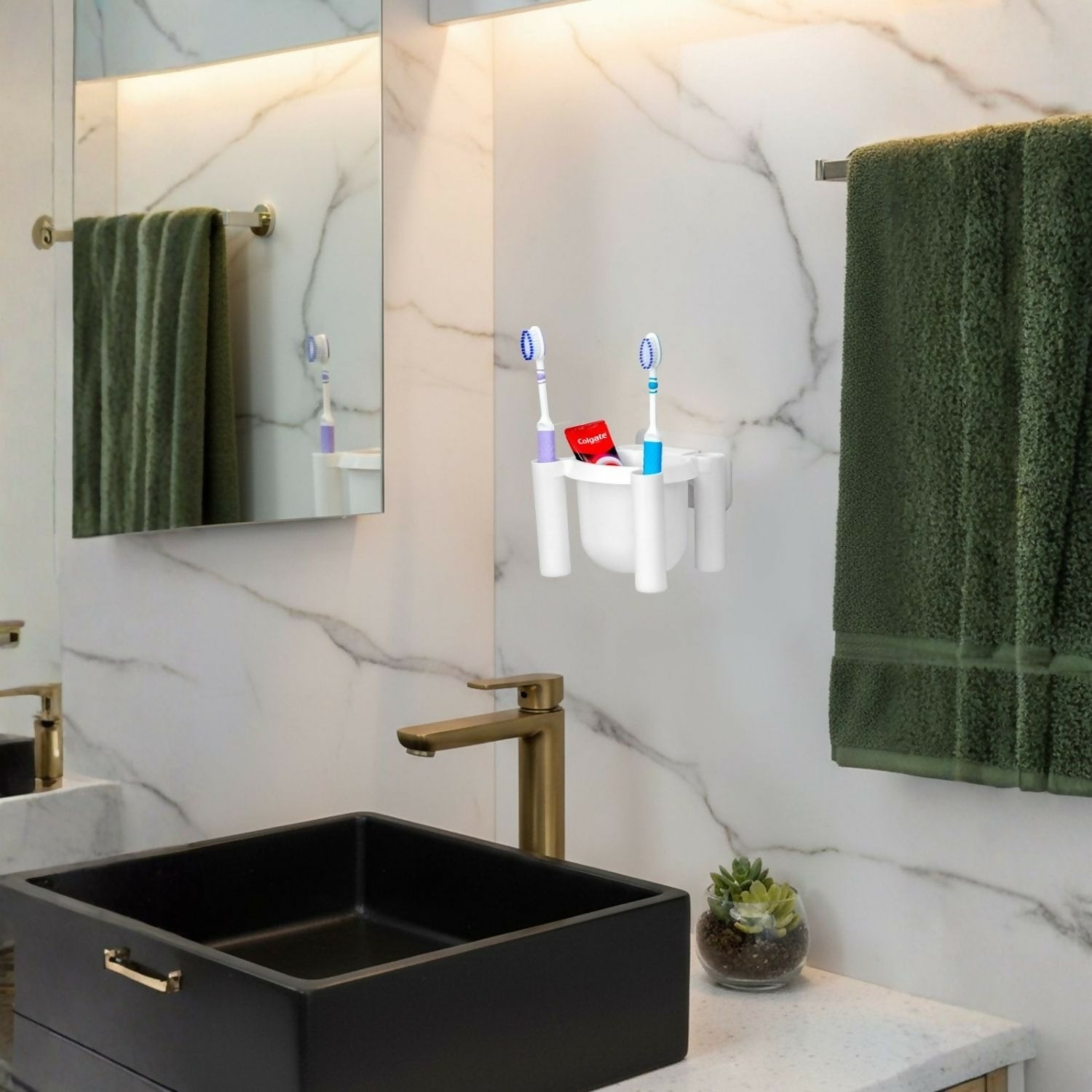 Drainmax Wall Mounted Toothbrush Holder Bathroom Organizer Rack (Pack of 2 )