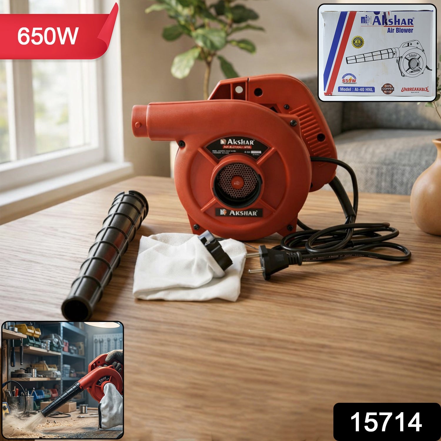 Akshar Electric Air Blower AI40 HNL 650W 1 Pc – Heavy Duty Multipurpose High Speed Dust Cleaning Blower with Suction Function for Home, Workshop and Industrial Use