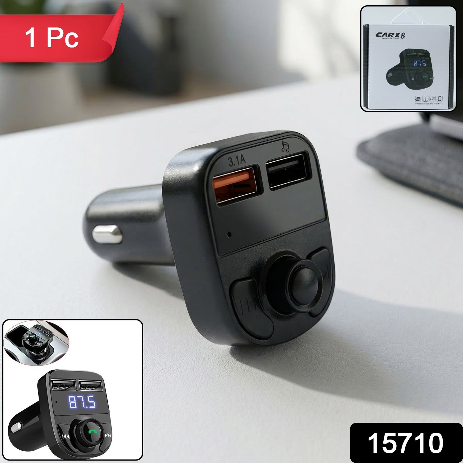 Wireless Car Charger with Dual USB Fast Charging Ports 1 Pc – Handsfree Calling Music Player with LED Display and Multi-Function Control Knob