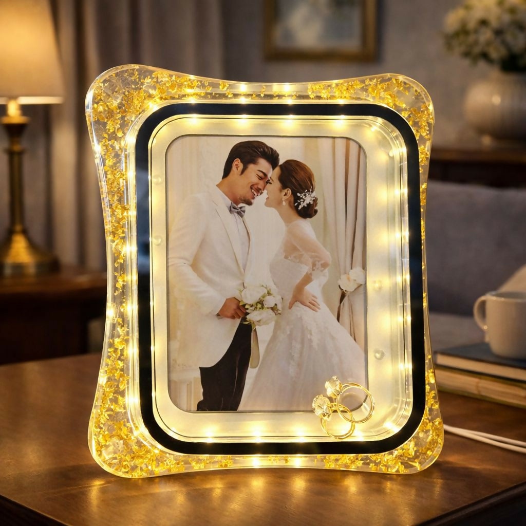 led photo frame, couple photo frame, light photo frame, decorative frame, wedding gift, anniversary gift, romantic decor, crystal frame, glowing photo frame, home decor item, table decor, gift for couple, memory frame, led frame decor, premium photo frame