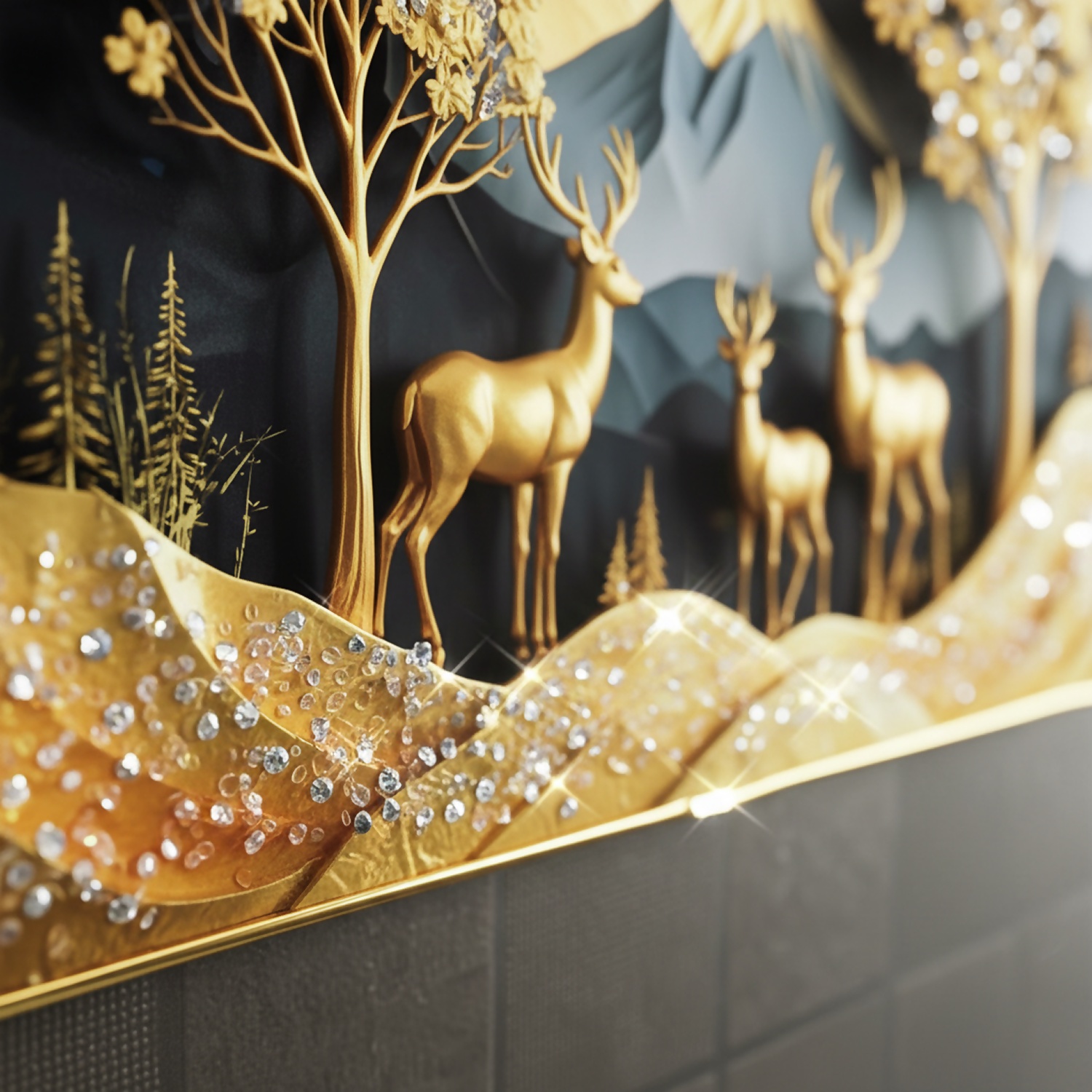 Luxury Golden Deer Mountain Landscape Wall Art Frame Home Decor