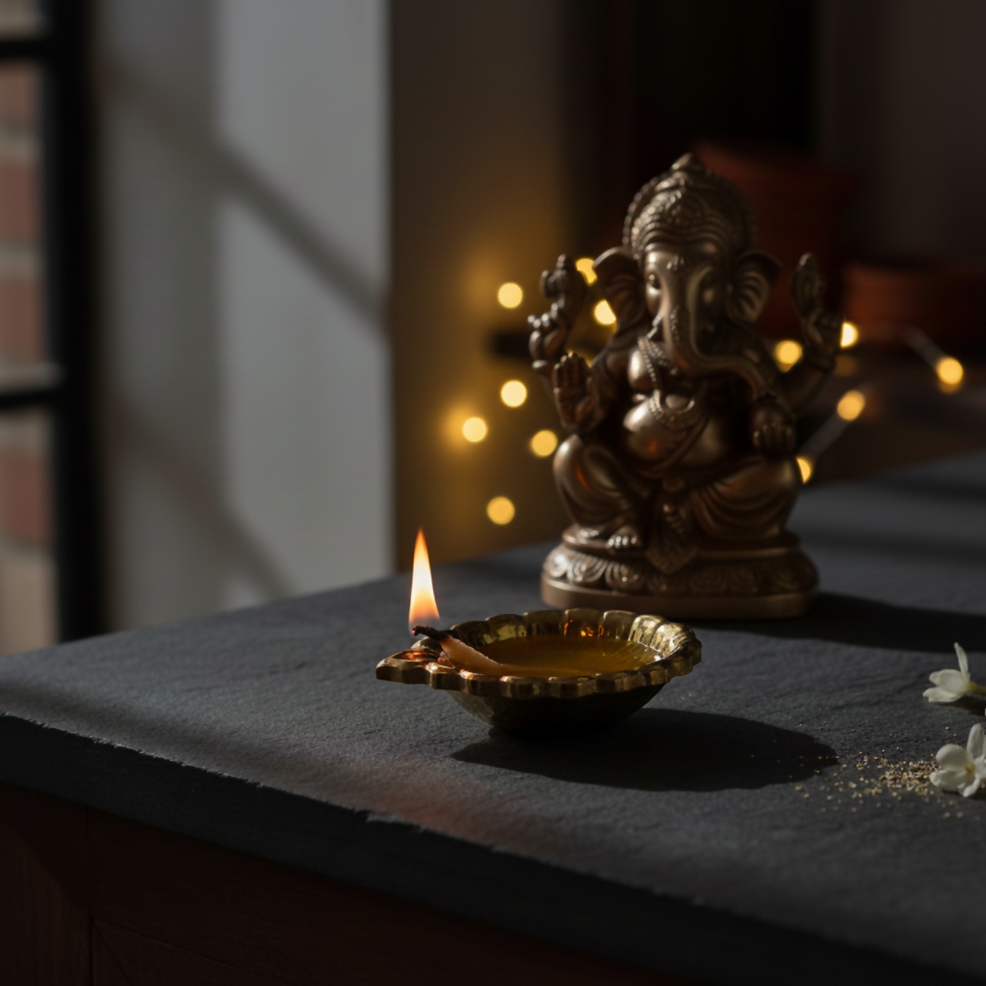Perfect for festivals, puja ceremonies, and home decoration, this diya enhances the spiritual ambiance of any space. The durable ceramic base combined with the premium gold metallic finish makes it a stylish decorative piece that complements traditional as well as contemporary décor.