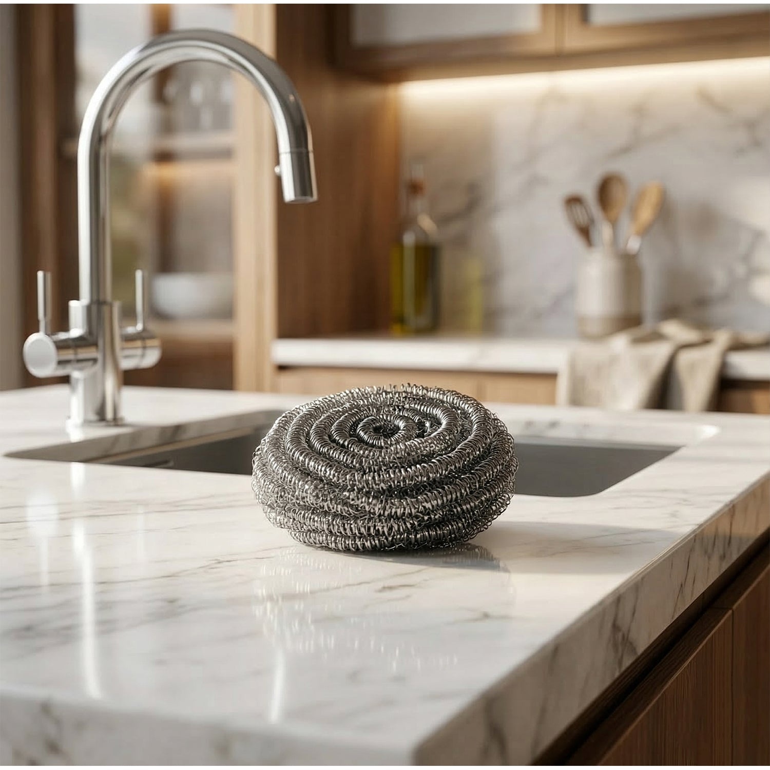 The durable steel mesh structure functions as a utensil cleaning scrub pad that easily tackles stubborn food residue. It also works as a steel dish scrubber and heavy duty scrubber, making it a reliable kitchen scrubber pad for everyday cleaning tasks.