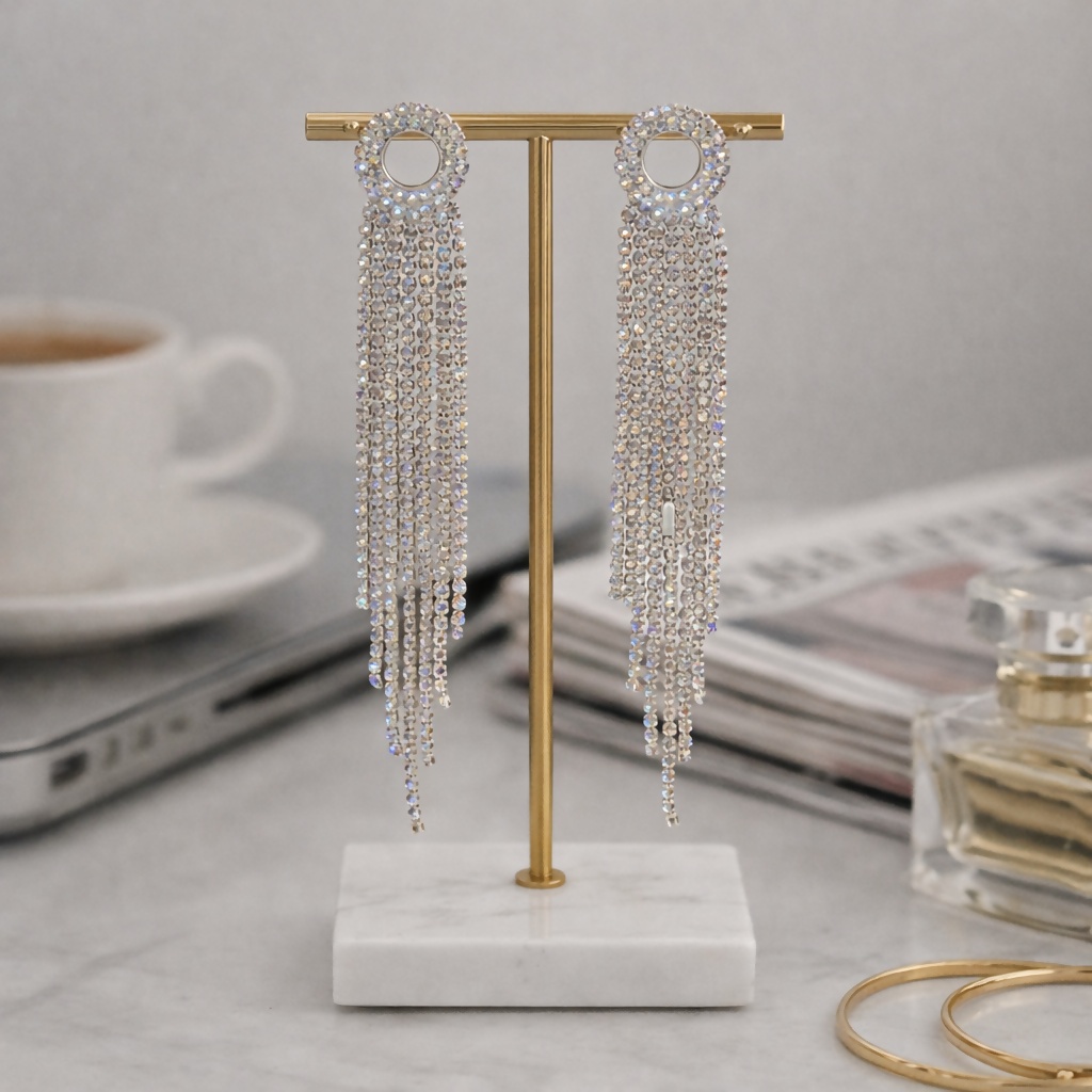 Elegant Crystal Tassel Statement Earrings