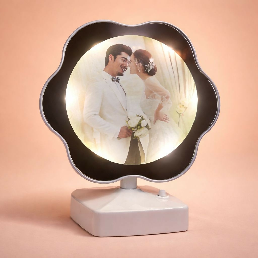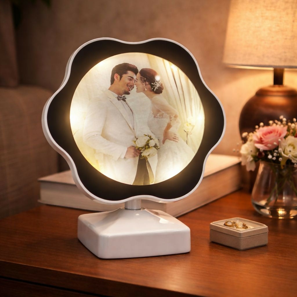 led photo frame, flower lamp, photo lamp, mirror photo frame, decorative lamp, bedside lamp, romantic gift, couple gift, memory frame light, home decor lamp, table lamp decor, personalized gift lamp