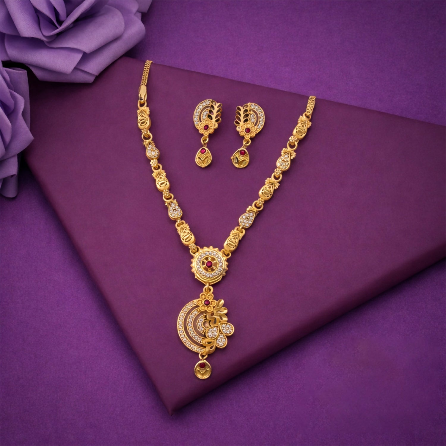 Enhance your style with this beautifully crafted artificial necklace set designed to bring elegance and charm to every occasion. Made with fine detailing and a premium finish, this necklace set offers the luxurious look of traditional jewellery while remaining lightweight and comfortable to wear. The intricate design and sparkling stones make it a perfect choice for weddings, festivals, parties, and special celebrations.