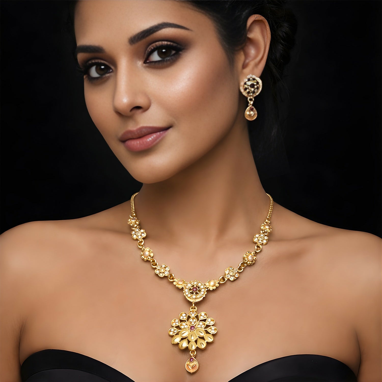 Enhance your style with this beautifully crafted artificial necklace set designed to bring elegance and charm to every occasion. Made with fine detailing and a premium finish, this necklace set offers the luxurious look of traditional jewellery while remaining lightweight and comfortable to wear. The intricate design and sparkling stones make it a perfect choice for weddings, festivals, parties, and special celebrations.