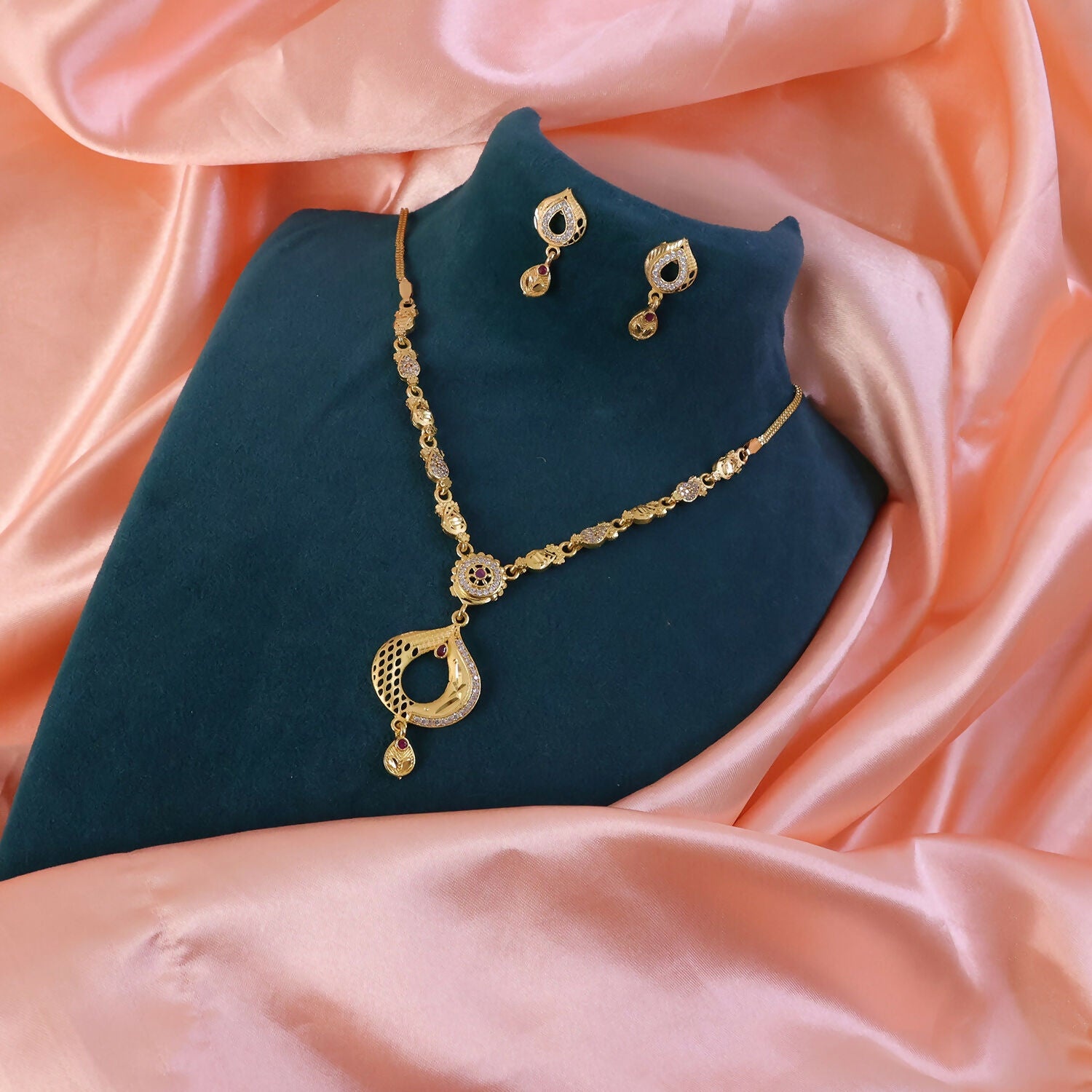 Elegant Gold-Tone Teardrop Pendant Necklace Set with Minimal Chain Design & Matching Earrings
