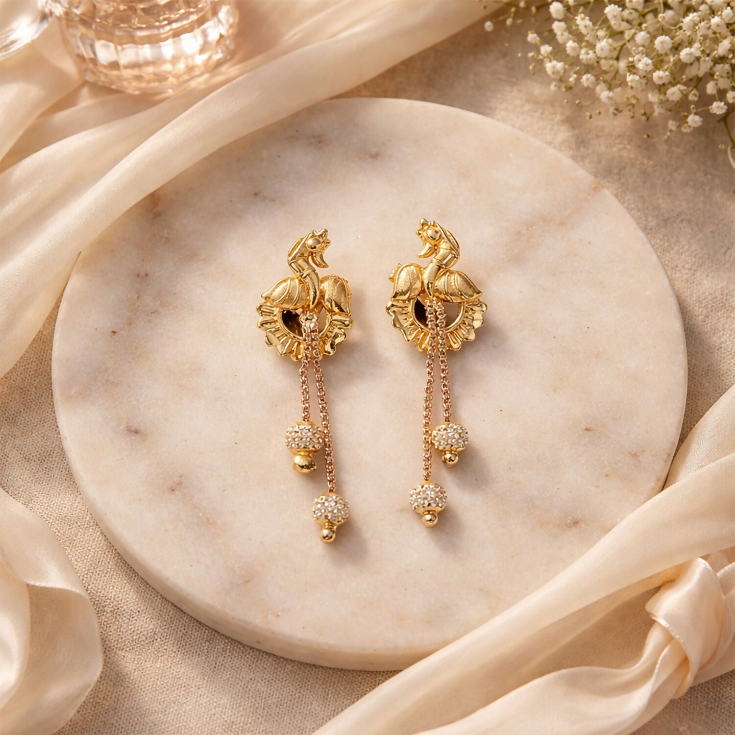 Classic Peacock Gold-Plated Dangling Earrings for Festive Wear (2 Pair)