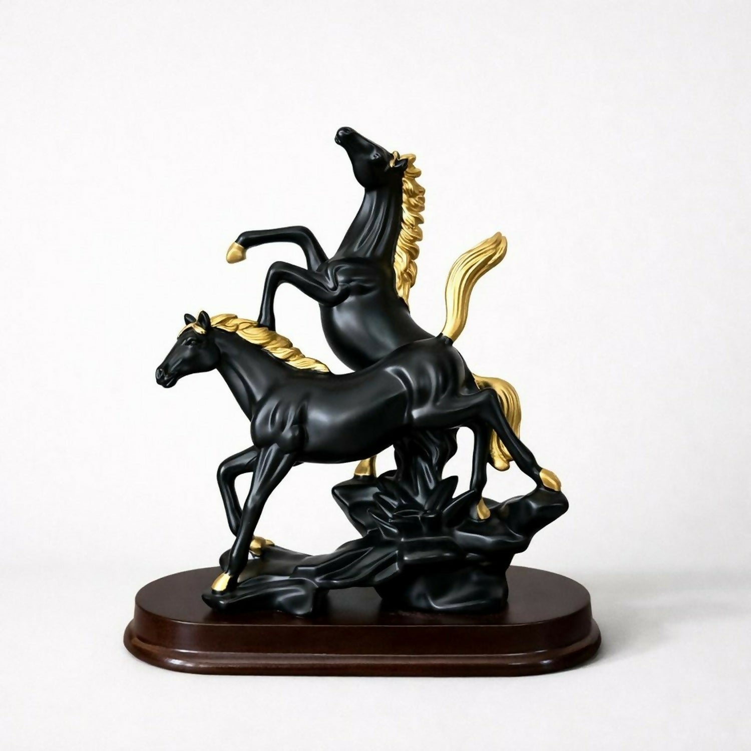 Black Elegant Double Horse Showpiece Decorative Statue for Home & Office Desk