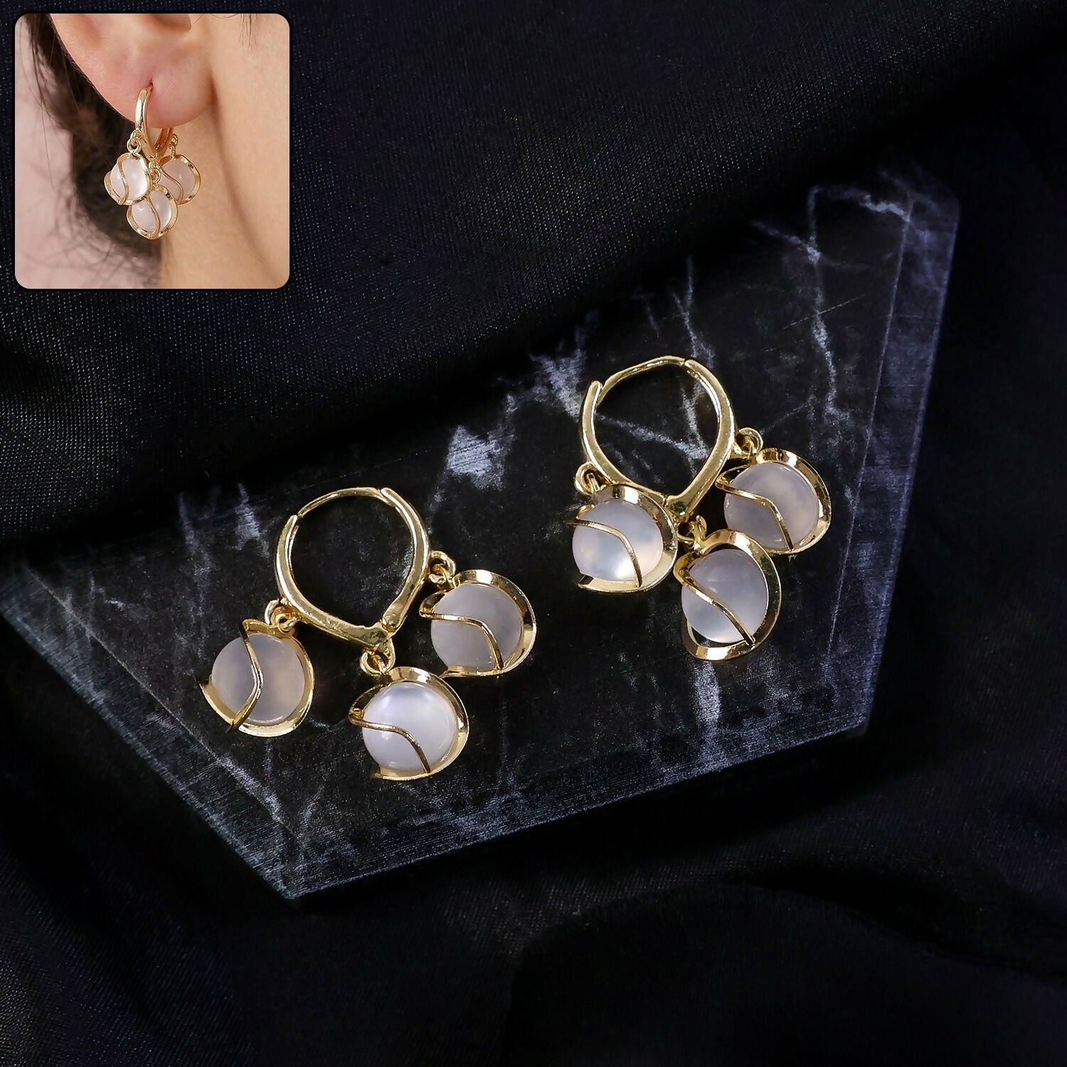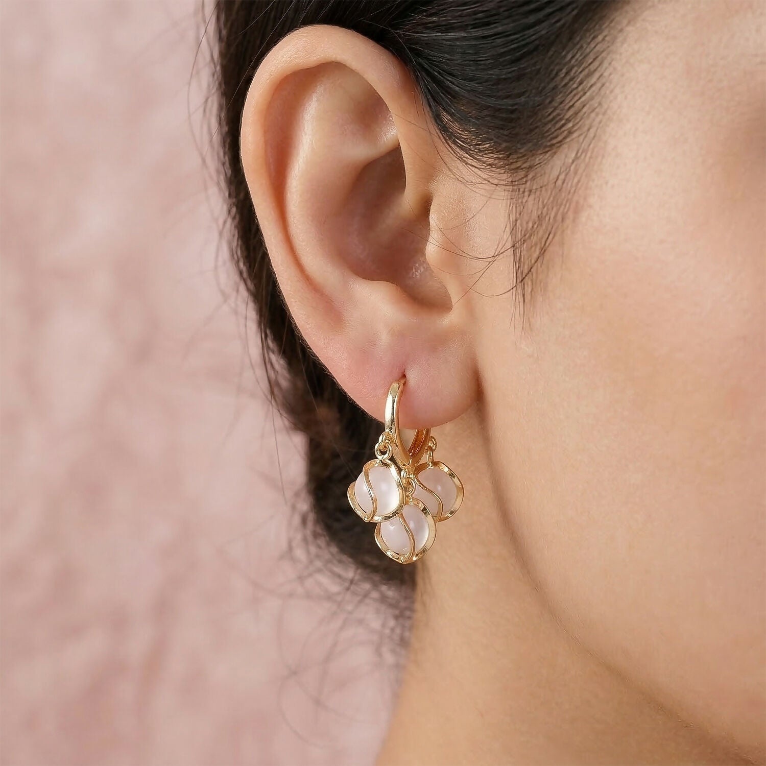 Design: Featuring a beautiful cluster of iridescent opal stones delicately suspended from a sleek gold-plated hoop. Their ethereal glow makes them stand out from traditional jewelry.