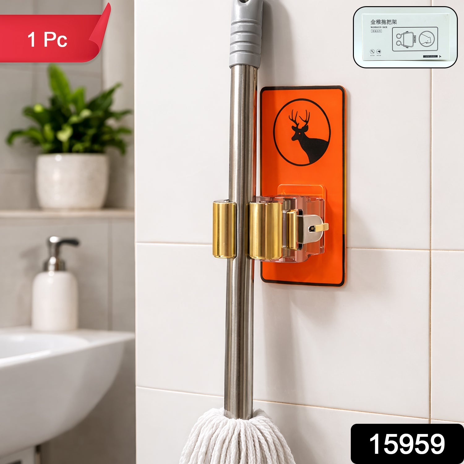 Wall Mounted Mop Holder Clip Bathroom and Kitchen Broom Holder Self Adhesive Mop and Stick Organizer Rack for Cleaning Tools Storage Home Utility Organizer – 1 Pc