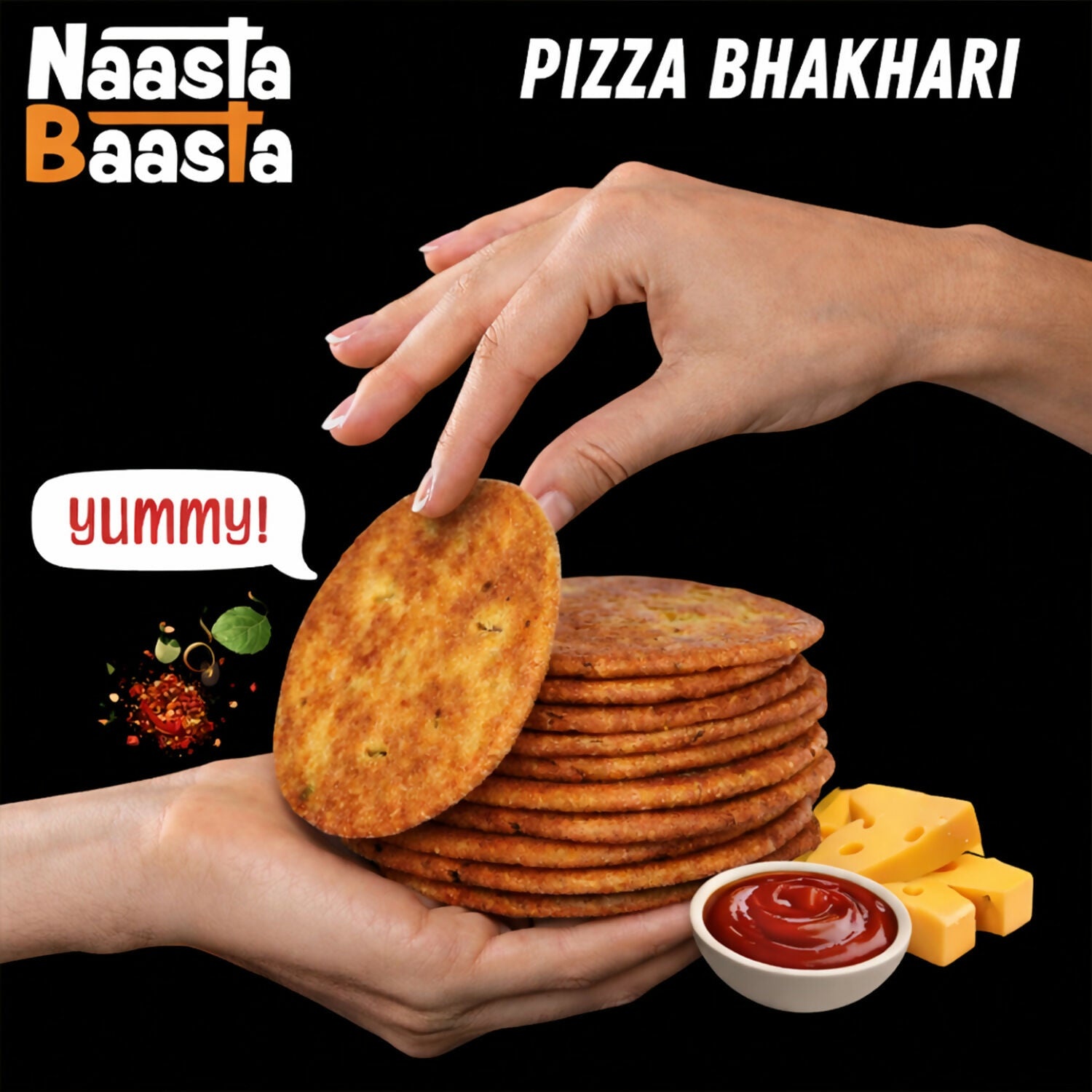 • Naasta Baasta Pizza Bhakhari brings the delicious taste of pizza flavor in a crispy traditional bhakhari form