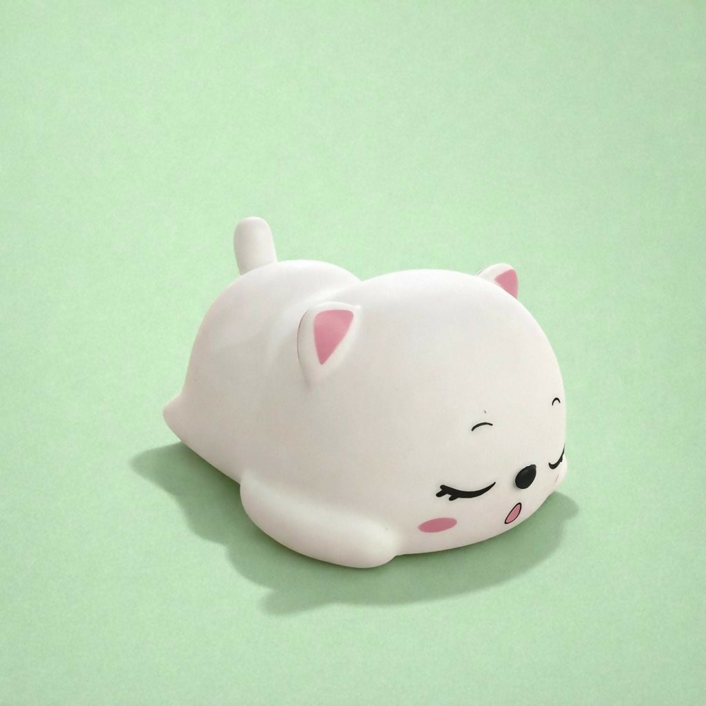 Bring a cozy and calming glow to your child’s room with this adorable sleeping cat night lamp. Designed with a soft, cute cat shape, this lamp creates a warm and soothing atmosphere that helps children feel relaxed at bedtime. Made from soft silicone material, the lamp is safe, lightweight, and comfortable to touch. It works perfectly as a bedside lamp, nursery light, or decorative night light for kids' rooms. Its charming design also makes it a wonderful gift for children, birthdays, baby showers, or room decoration.