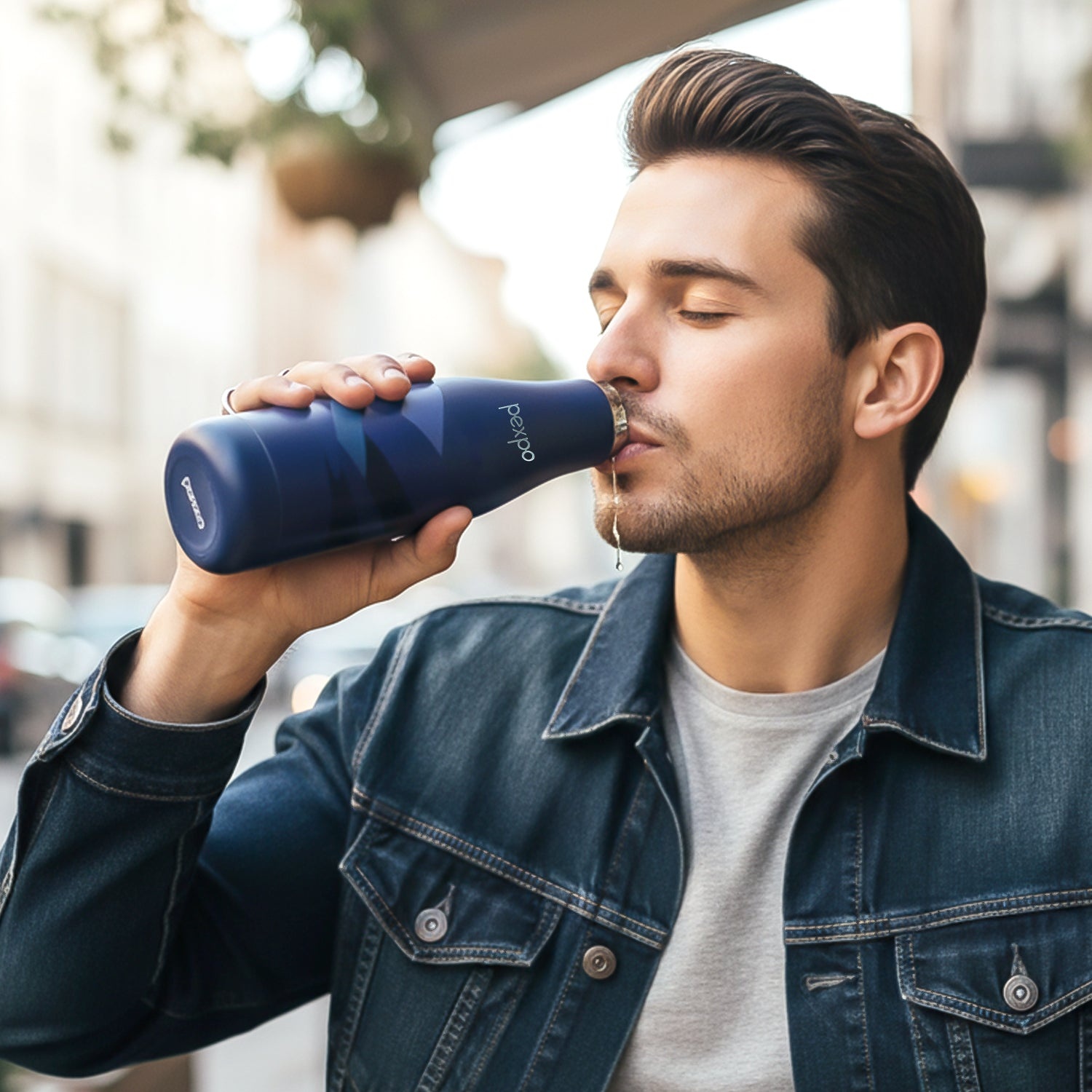 Pexpo Infinity Art water bottle is designed to provide a stylish and practical hydration solution for everyday use. The bottle features an attractive art-style design combined with a durable structure suitable for daily activities such as gym workouts, office routines, travel, and outdoor use. Its vacuum insulation helps maintain beverage temperature, making it suitable for carrying both hot and cold drinks. The leakproof lid helps prevent spills, while the attached carry strap allows convenient portability. With its modern design and reusable construction, this bottle offers a reliable option for staying hydrated throughout the day.