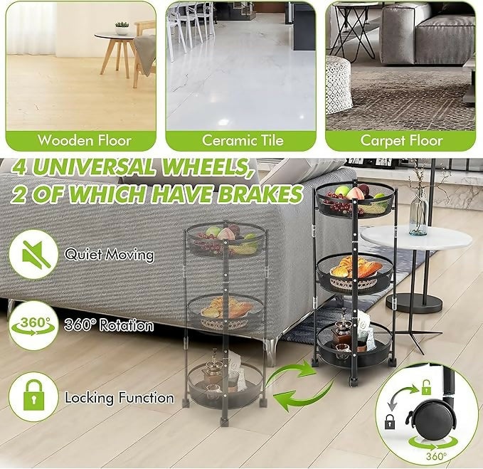 This multi-purpose organizer works as a vegetable trolley, fruit rack, kitchen cart, bathroom organizer, or utility stand, making it a must-have for every modern home.