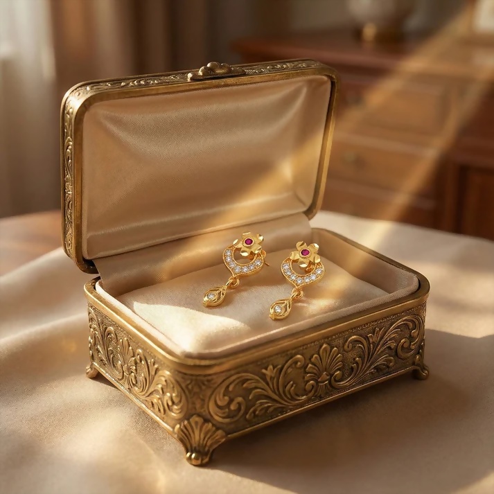 These elegant earrings are designed to enhance any look with their refined and timeless appeal. Featuring a premium gold finish and beautifully detailed stones, they add a touch of sophistication to both everyday outfits and special occasions. Their lightweight build ensures comfortable wear throughout the day, while the intricate craftsmanship brings out a graceful and luxurious charm. Whether for casual styling or festive events, these earrings effortlessly elevate your overall appearance. A perfect blend of style and elegance, they make a versatile accessory every jewelry collection deserves.
