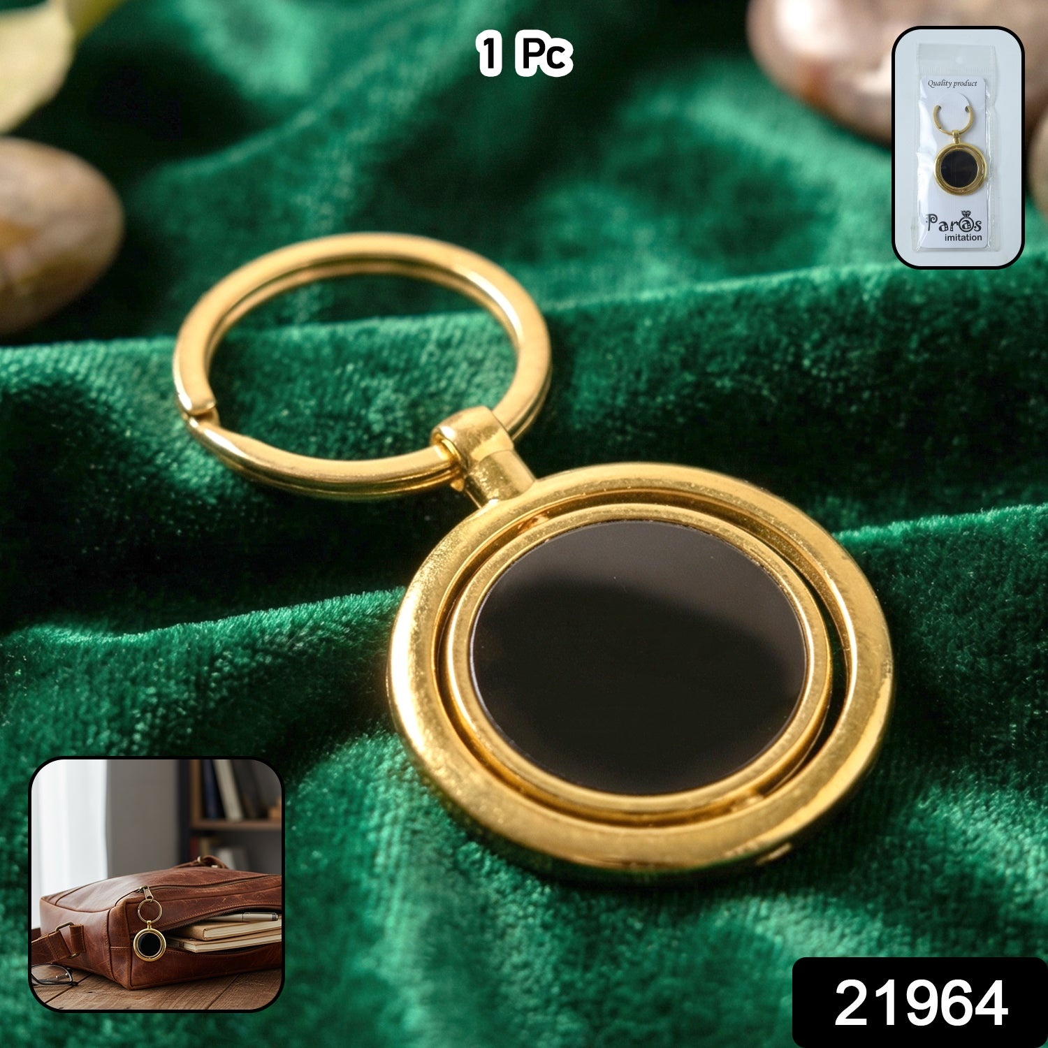 Gold Plated Keychain with Black Round Pendant Rotating Spinner Key Ring Holder for Car Keys Bike Keys House Keys Bag Charm Stylish Key Holder Accessory – 1 Pc