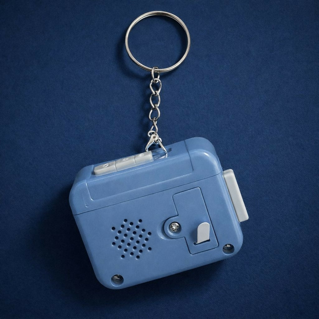 Add a touch of nostalgia to your everyday accessories with this retro cassette tape keychain sound toy. Designed in the shape of a classic cassette player, this fun keychain features realistic retro styling and produces a satisfying click sound when the buttons are pressed. Compact and lightweight, it easily attaches to keys, backpacks, handbags, or purses. The vintage cassette design makes it a unique accessory for music lovers, retro enthusiasts, and anyone who enjoys fun novelty gadgets. Perfect as a quirky gift, return gift, or collectible accessory.