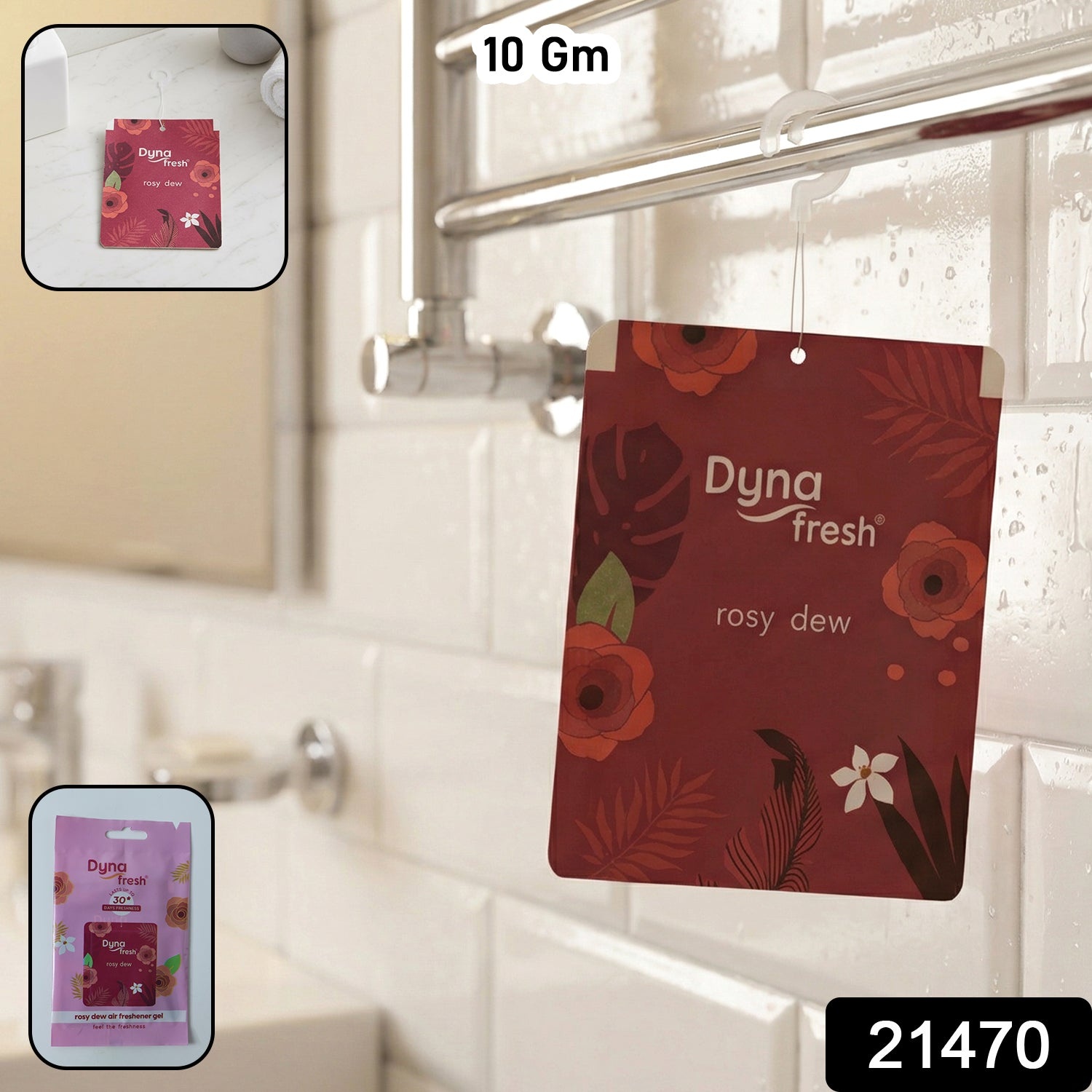 Enhance your space with the soothing aroma of Rosy Dew Hanging Air Freshener. Designed to provide a pleasant floral fragrance, this compact paper freshener helps reduce unpleasant odors and maintain a refreshing atmosphere in enclosed areas. Its lightweight hanging design makes it easy to place in bathrooms, wardrobes, cars, and other small spaces without taking up surface area. The rosy dew fragrance delivers a gentle and calming scent that keeps your surroundings feeling clean and inviting. Ideal for daily use, it offers a simple and effective way to maintain freshness.
