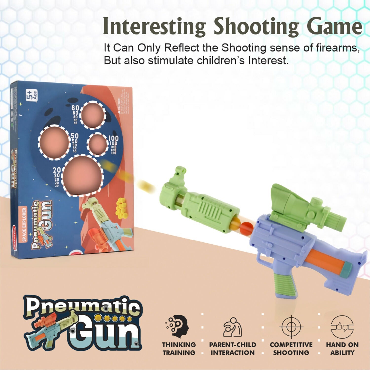 INTERACTIVE & DEVELOPMENTAL PLAY: Simulates a realistic shooting experience that captivates children, enhancing their thinking skills, hand-eye coordination, and balance through active play.