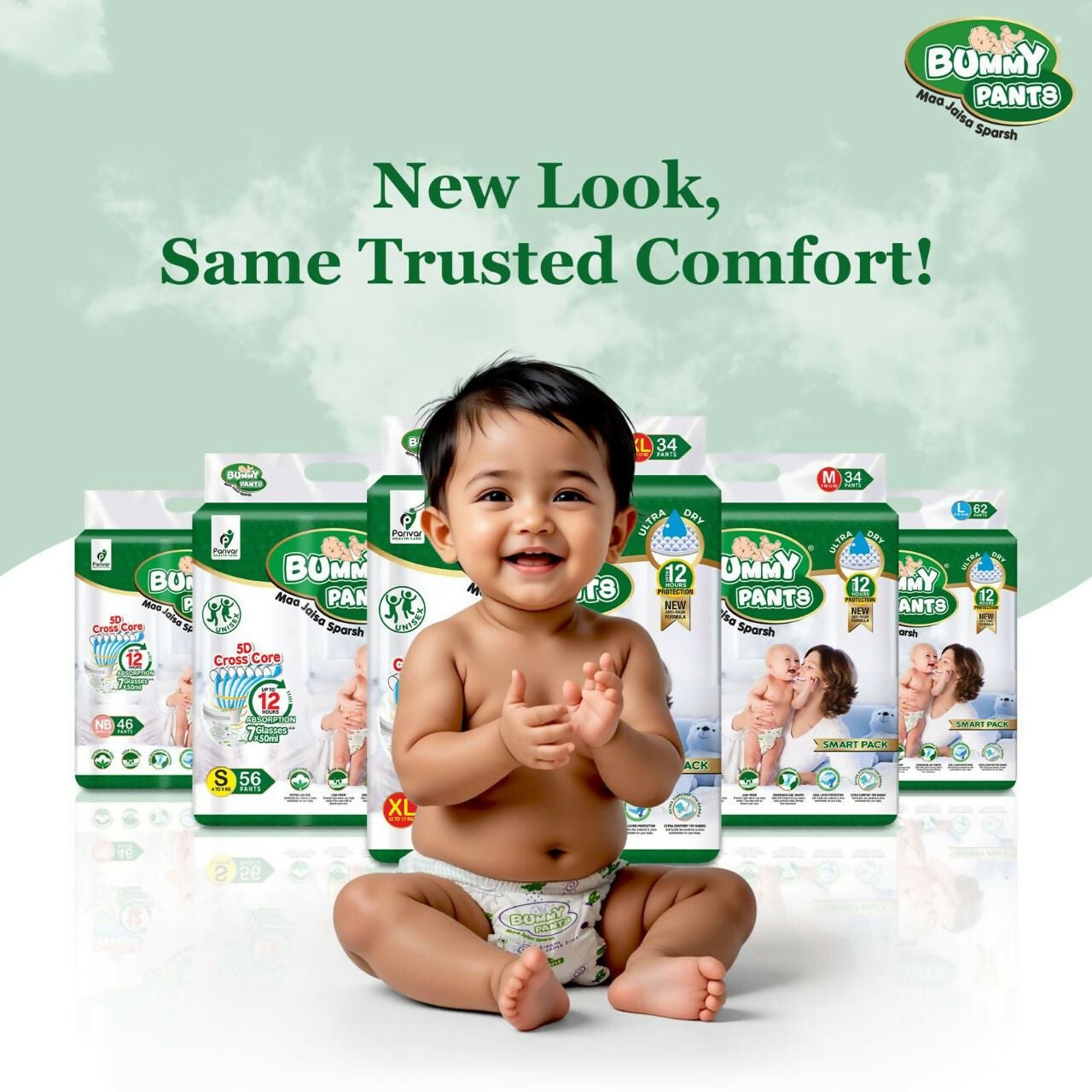 Bummy Pants Baby Diaper Pants are designed to provide all-day dryness, superior comfort, and reliable protection for your little one. Featuring 360° leakproof coverage with dual-layer protection, these diaper pants help prevent side leaks while ensuring fast absorption for long-lasting dryness. The soft, breathable material offers rash-free comfort and a gentle fit that hugs every movement, making it ideal for active babies. Designed in an easy pull-up, underwear-like shape, they are simple to wear and remove, ensuring hassle-free diaper changes.
