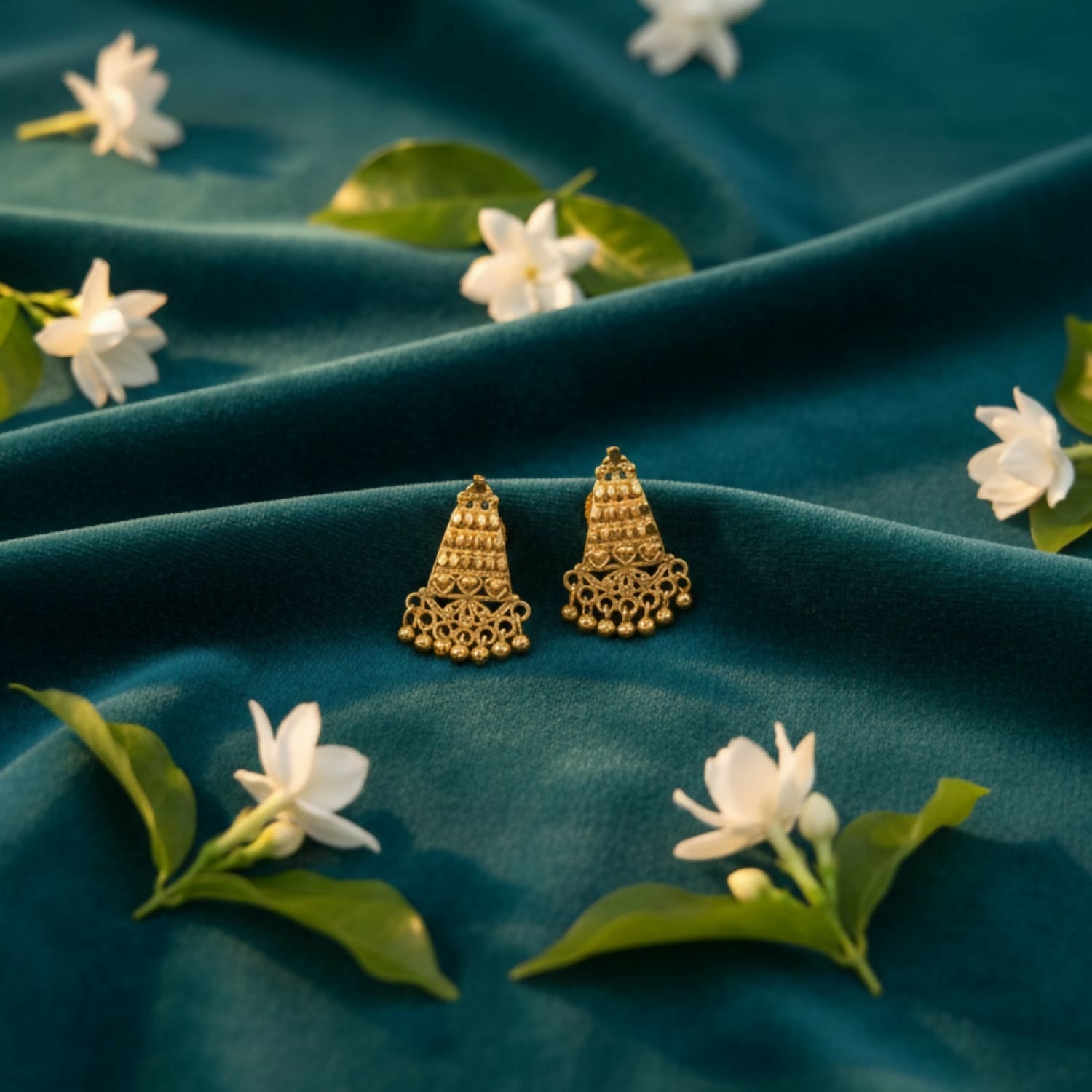 Elevate your ethnic wardrobe with these exquisitely crafted Gold-Plated Jhumka Earrings, featuring intricate filigree work and a classic bell-shaped drop. The ornate circular studs are accented with vibrant green and blue enamel touches, adding a regal pop of color to the traditional design. Finished with delicate golden beads that offer a graceful sway, these lightweight yet stunning earrings are the perfect statement piece for weddings, festivals, and special celebrations.