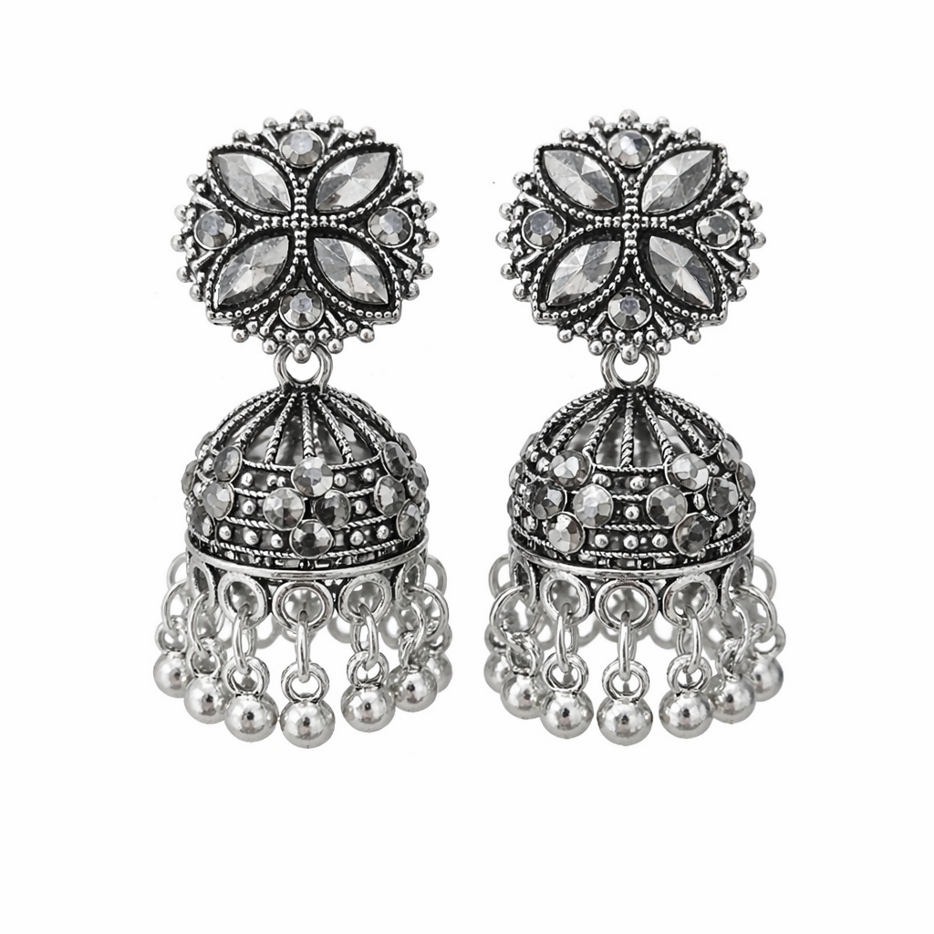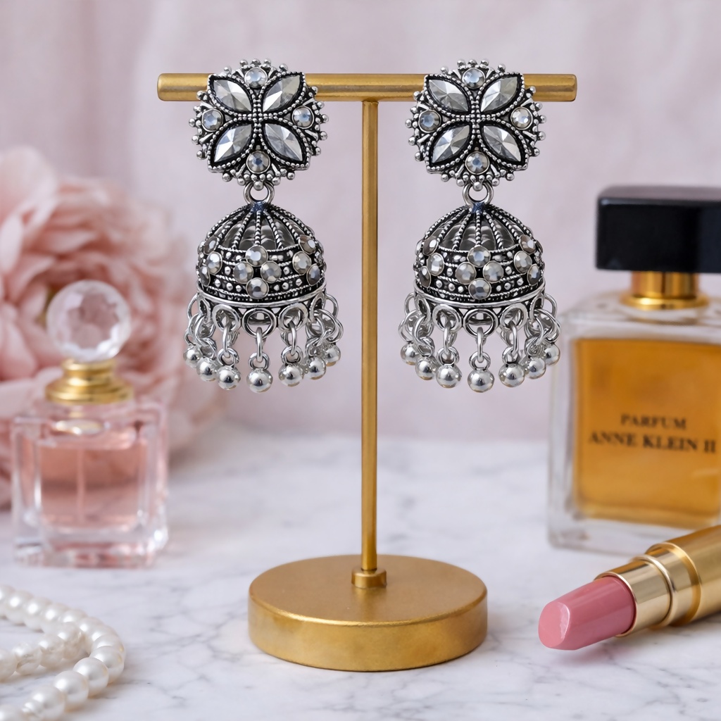 ELEGANT TRADITIONAL SILVER OXIDISE JHUMKA EARRINGS