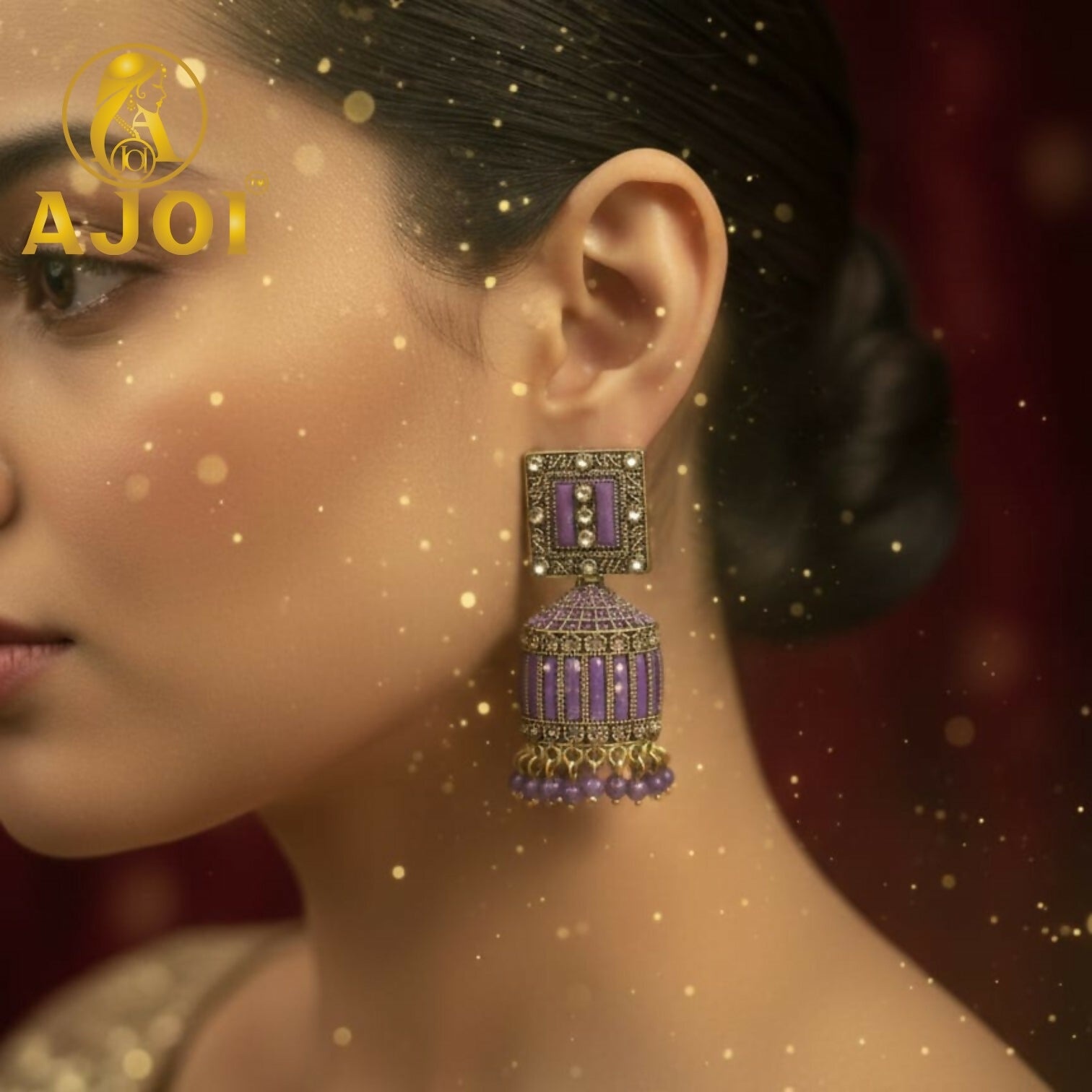 Step into elegance with these premium lavender purple designer jhumka earrings. Featuring intricate gold detailing, shimmering stones, and soft purple accents, this exquisite pair adds a graceful and luxurious charm to your festive and wedding looks.