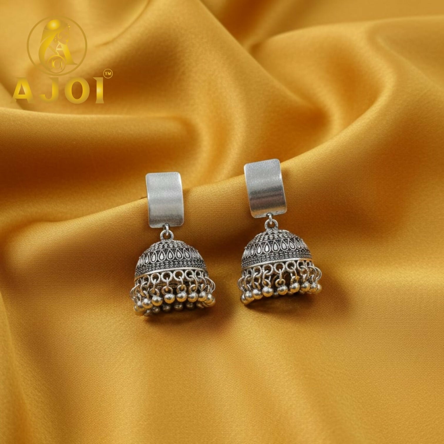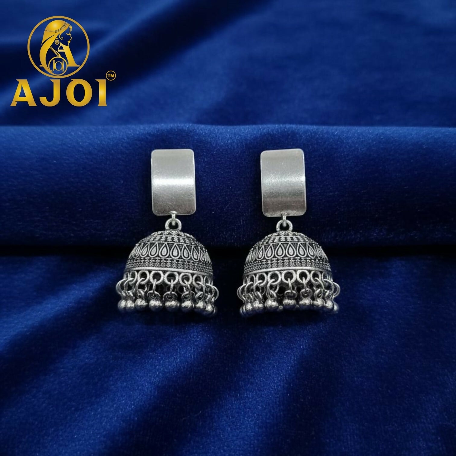 Elevate your ethnic style with these premium oxidised silver dome jhumka earrings, featuring intricate detailing and elegant ghungroo drops. Perfect for festive wear, weddings, and traditional occasions, these earrings add a graceful and royal charm to any outfit.