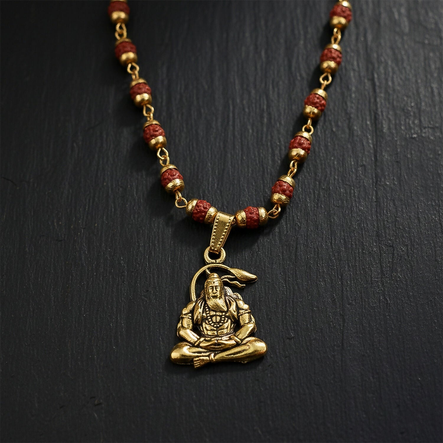 Embrace strength and devotion with this beautifully crafted Gold Plated Hanuman Pendant Necklace. Designed with detailed artwork of Lord Hanuman in a meditative pose, paired with classic Rudraksha beads and elegant gold-tone links, this necklace reflects spiritual power and protection. Ideal for daily wear, पूजा, or as a meaningful gift symbolizing courage, faith, and positivity.