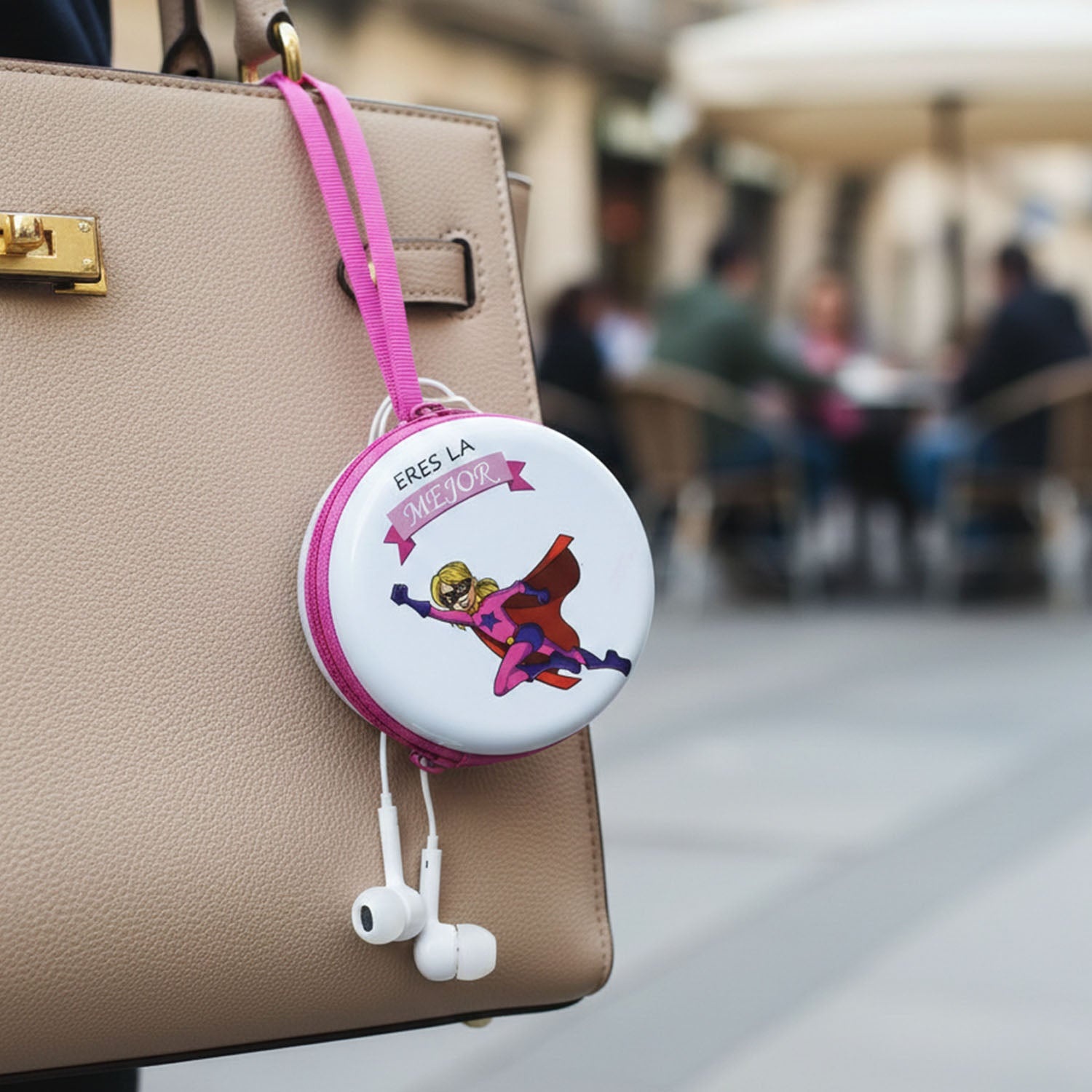 portable round earphone case, wired earphones set, compact earphone storage pouch, zipper closure earphone case, travel earphone organizer, school earphone pouch, office earphone case, daily use earphone storage, multipurpose earphone carry case, lightweight earphone pouch, portable audio accessory case, headphone storage bag, strap attached earphone pouch, protective earphone case