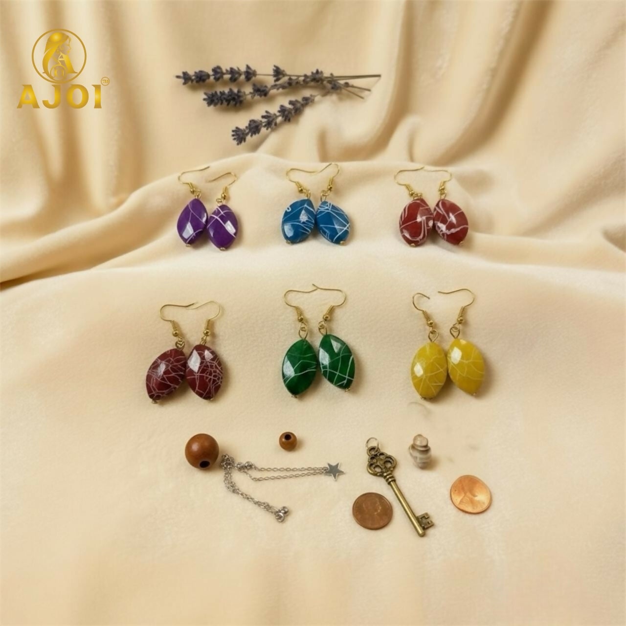 Add a touch of color and elegance to your everyday style with this beautiful Kati Earrings Pack of 6. Each pair features a unique marble-pattern stone drop, designed in vibrant shades like purple, green, red, yellow, and blue. The artistic white streak detailing gives every earring a handcrafted, premium look that stands out effortlessly.