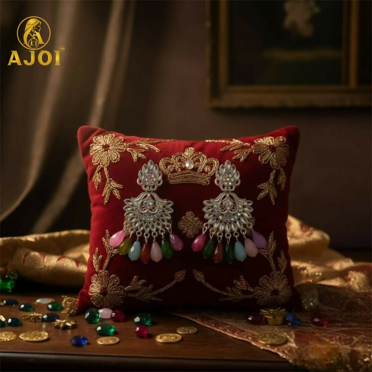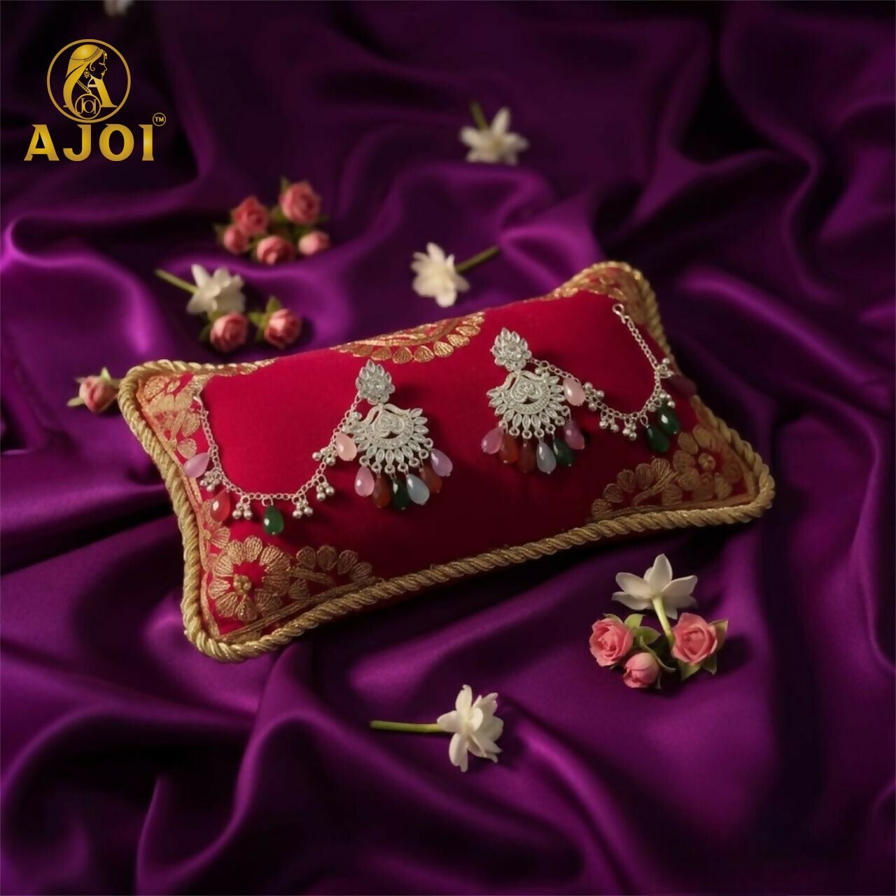 Even when not worn, the earrings stand out beautifully in their presentation — displayed on a luxurious velvet cushion surrounded by delicate floral elements, making them ideal for gifting. These earrings are not just accessories; they are an expression of artistry, tradition, and timeless beauty passed through generations.