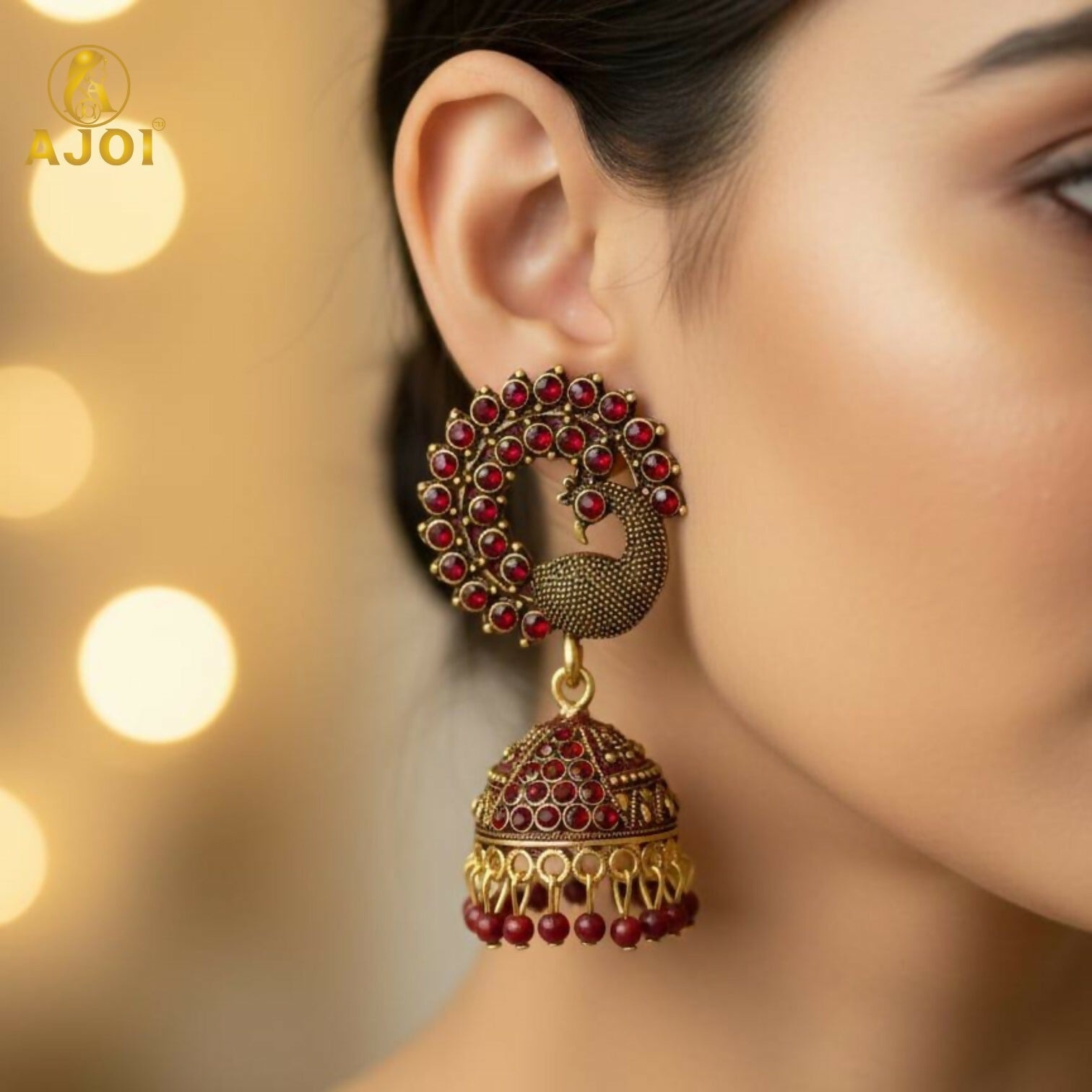✨ Design: Peacock Motif with Jhumka Drop