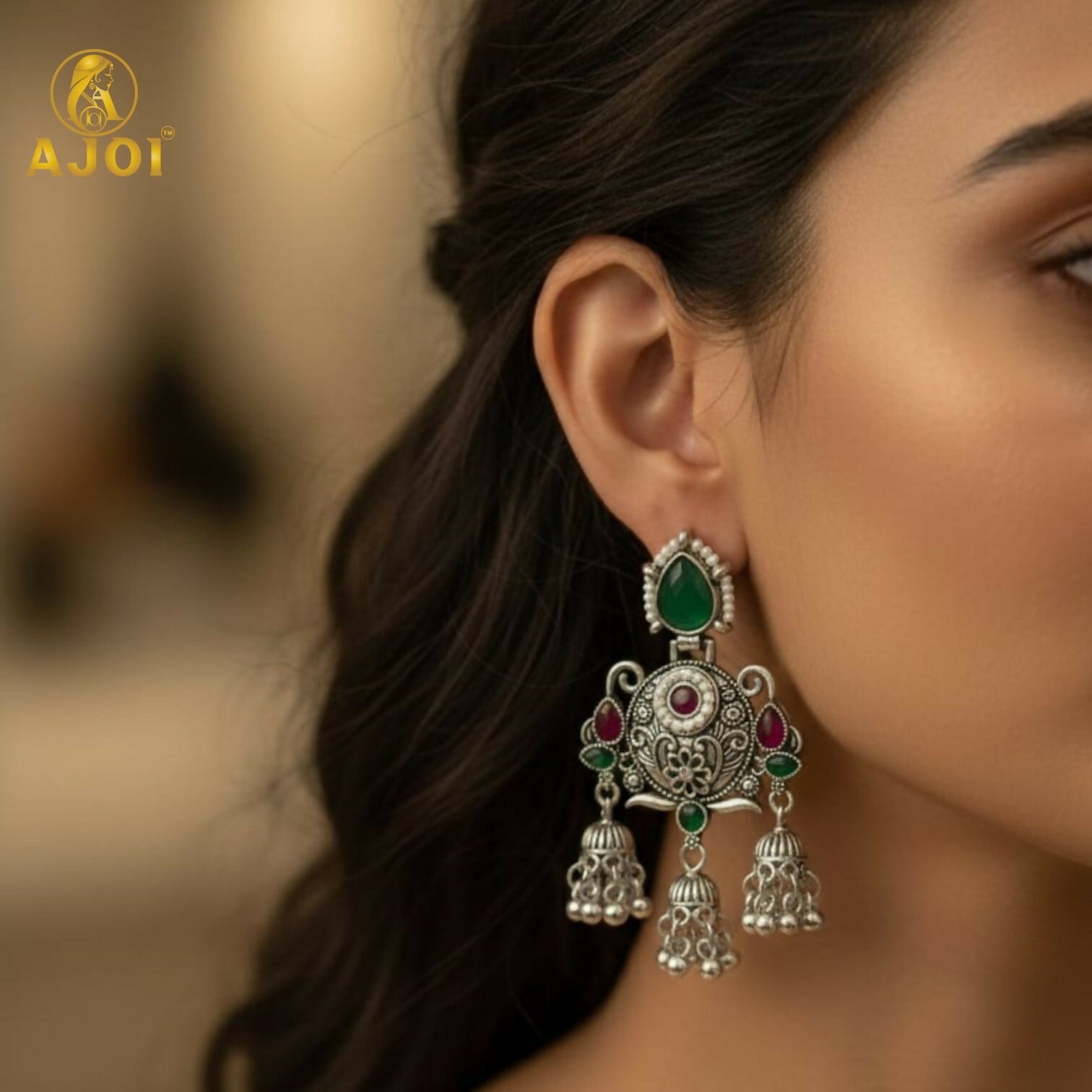 The oxidised finish gives a vintage royal look while remaining lightweight and comfortable for long wear. These earrings are perfect for weddings, festive celebrations, parties, cultural events, Navratri, Diwali, and family functions. They pair beautifully with sarees, lehengas, kurtis, and Indo-western outfits.