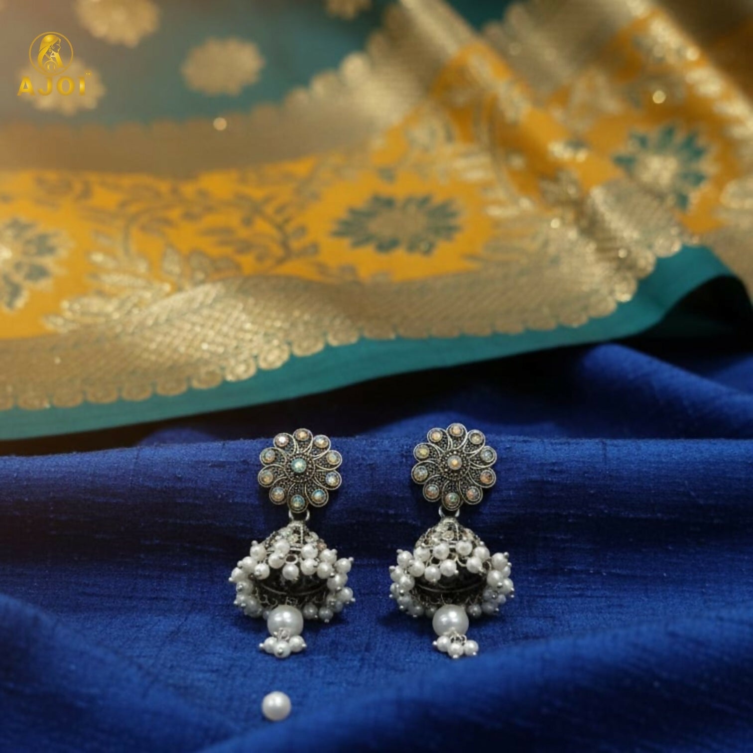 Celebrate timeless Indian tradition with these beautifully crafted oxidised silver round jhumka earrings. Featuring an intricately designed circular stud inspired by classic Indian motifs, these earrings are paired with dome-shaped jhumkas adorned with delicate pearl clusters. The elegant pearl drop at the base adds graceful movement and charm. Perfect for weddings, festivals, puja, and ethnic occasions, these earrings complement sarees, lehengas, and salwar suits effortlessly. A must-have accessory for lovers of traditional Indian jewellery.