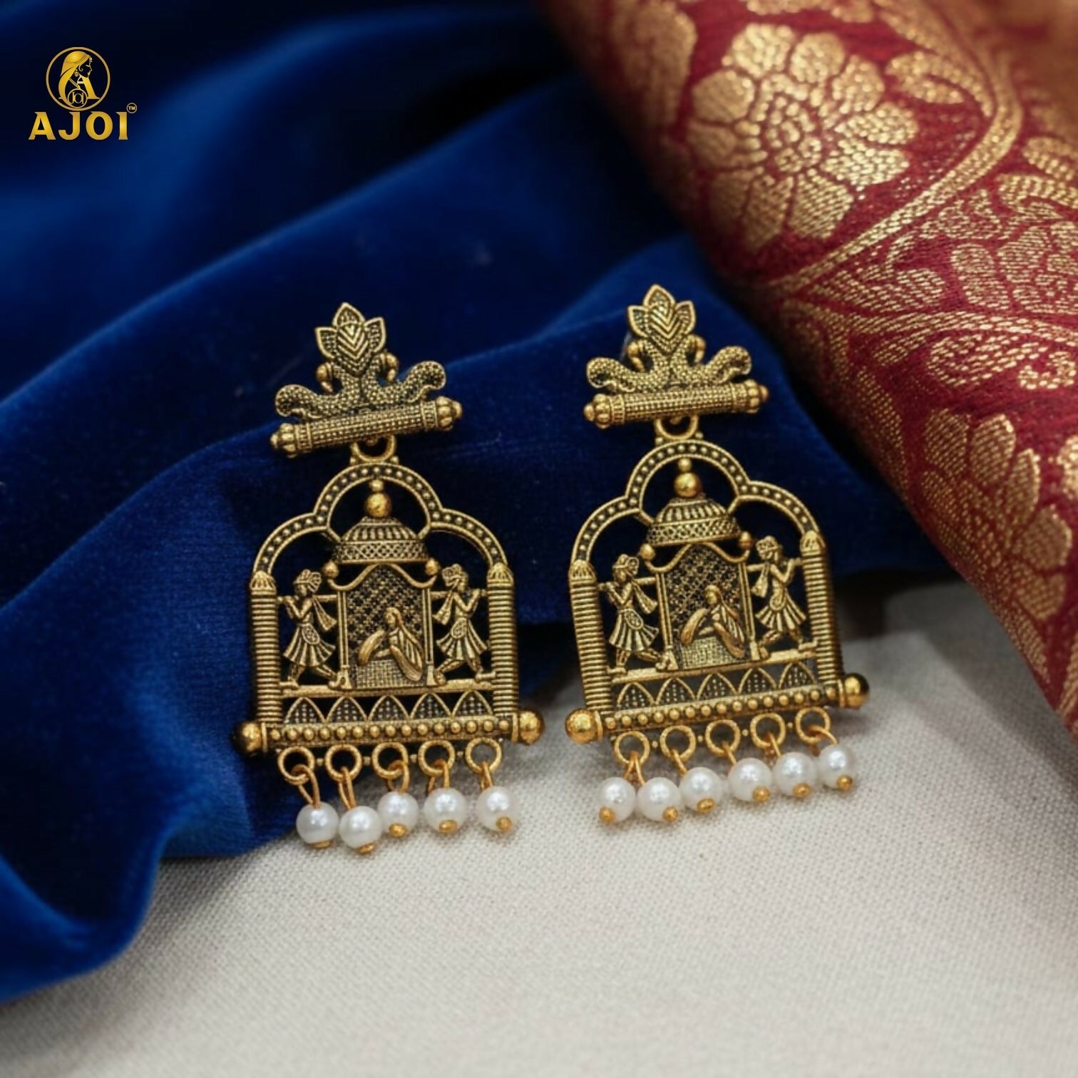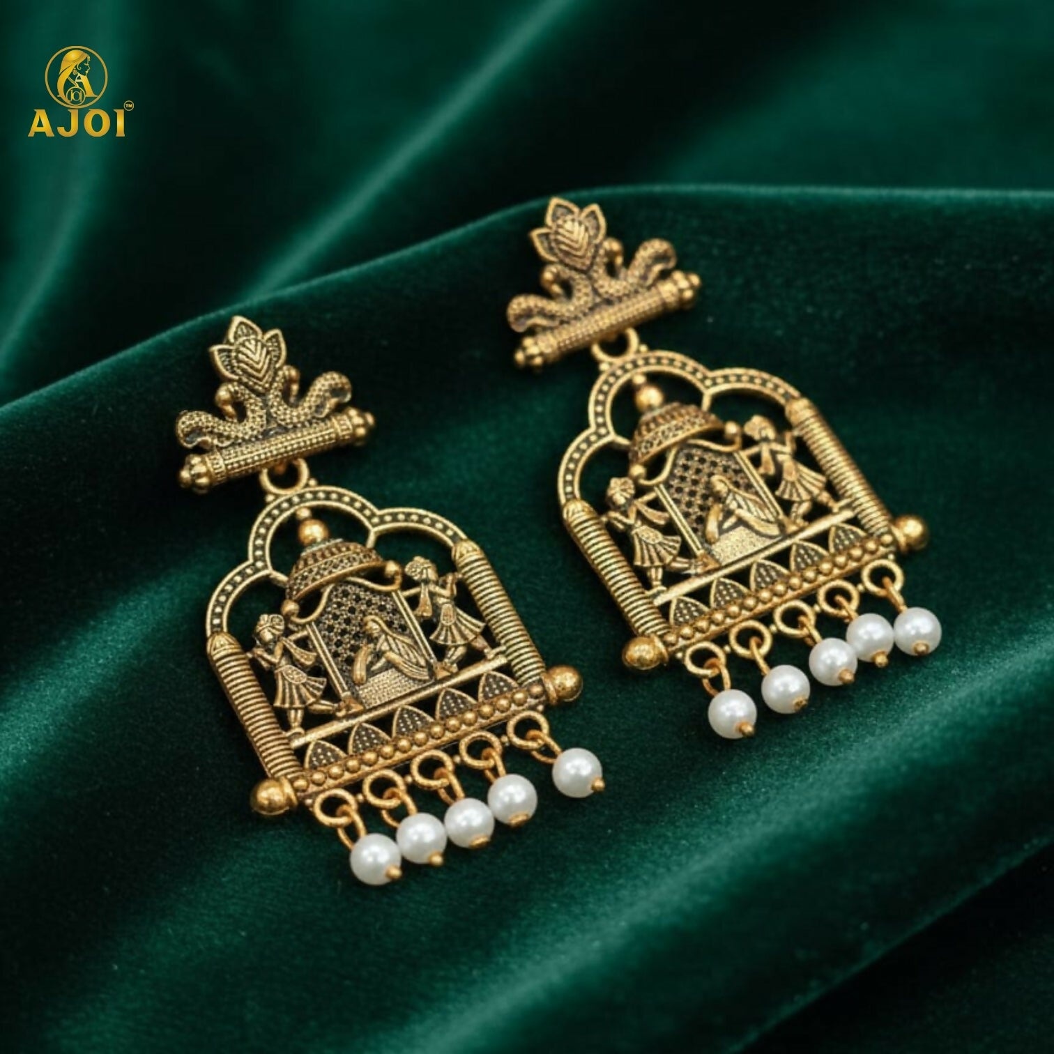 Finished with elegant pearl danglers, these earrings add soft movement and refined charm, making them perfect for bridal wear, festive occasions, and traditional celebrations. A true statement of cultural artistry, this pair brings regal elegance to every ensemble.