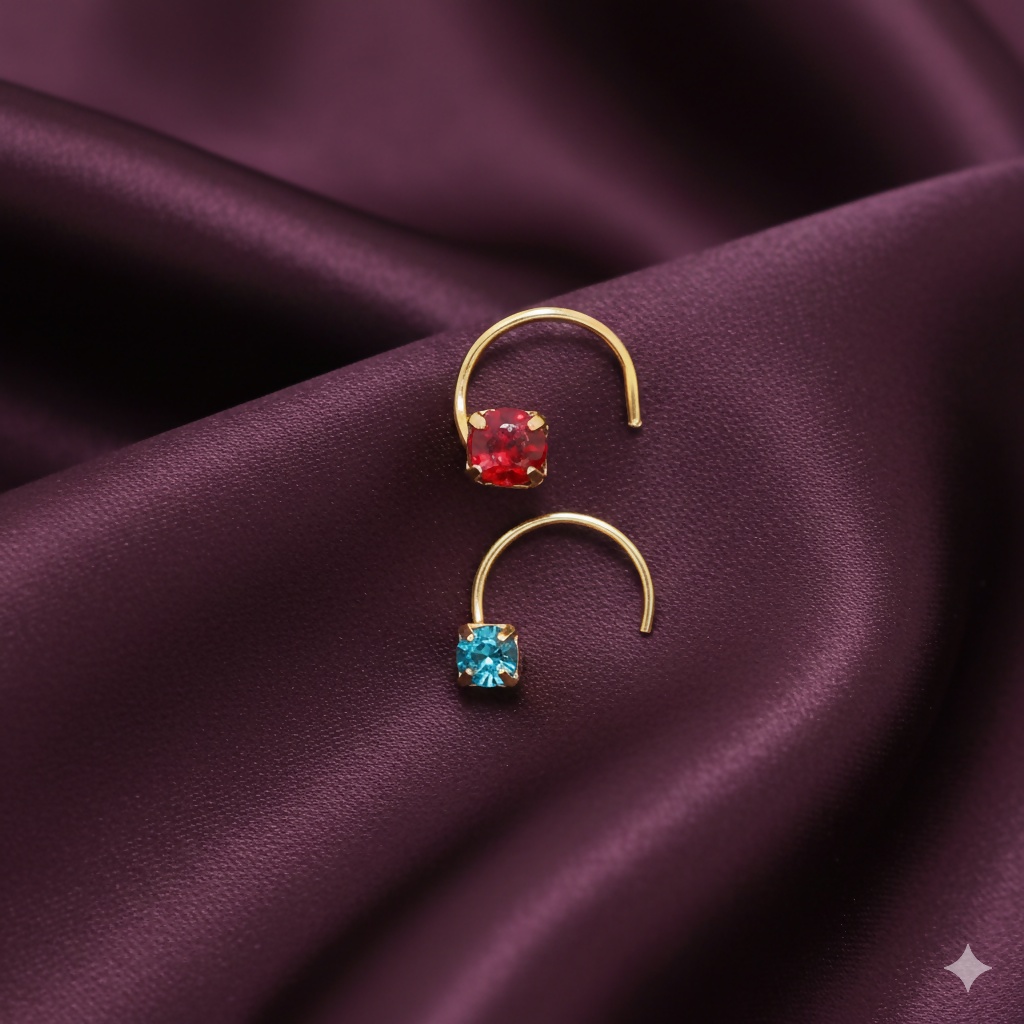 Elevate your accessory game with this vibrant 2-piece crystal nose pin set. This pair offers two distinct colors to suit your mood or outfit, ensuring a perfect blend of style and versatility.