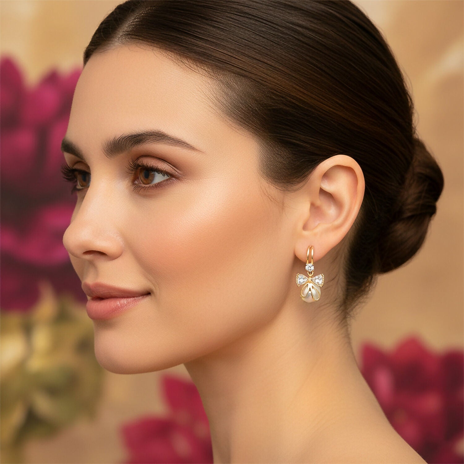 Crafted with premium gold plating and high-quality finishing, these earrings are lightweight, skin-friendly, and comfortable for long-time wear. The unique bow design combined with pearl detailing makes these earrings perfect for both daily wear and special occasions.