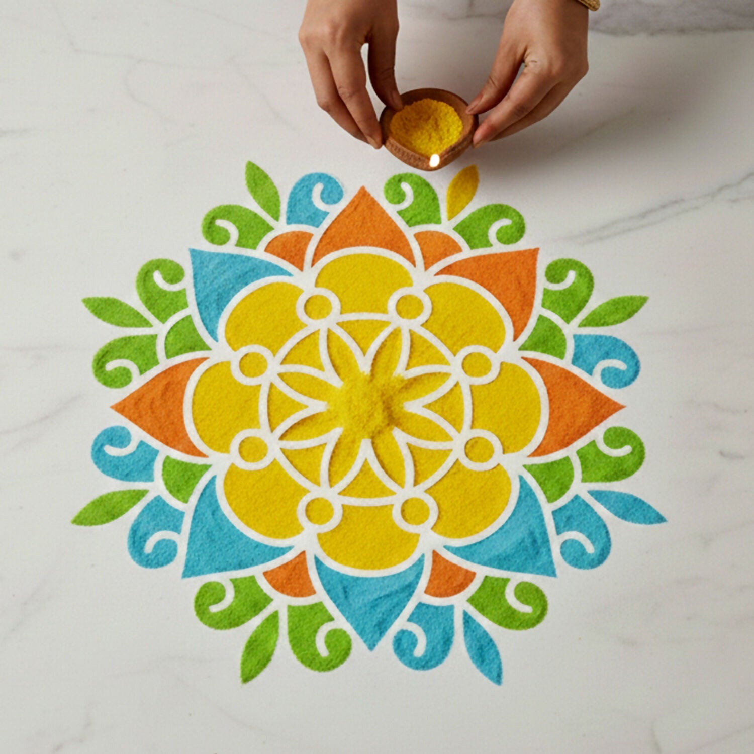 Clean & Symmetrical Look: Helps you get a proper round rangoli easily