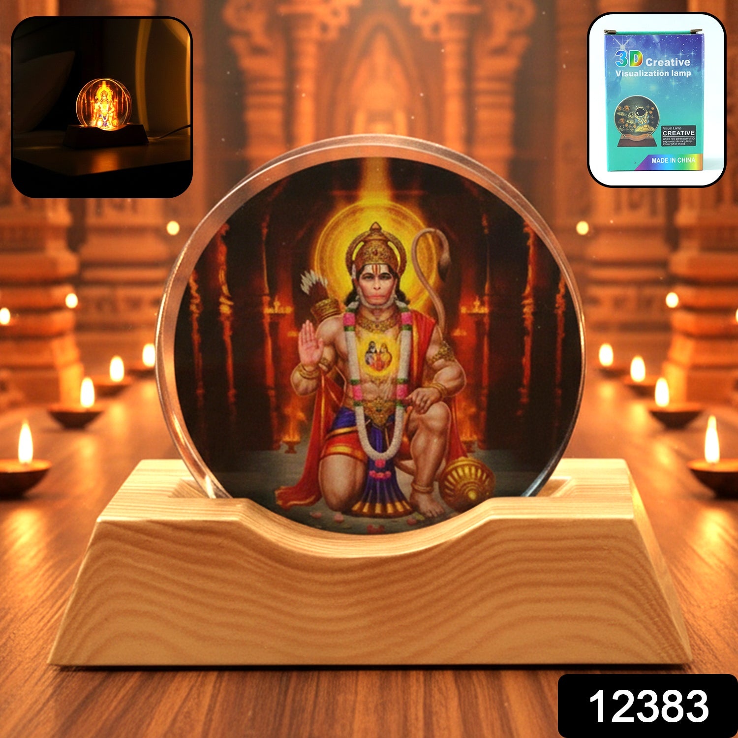 Bring divine energy and peaceful ambience to your space with this beautiful 3D Hanuman Ji Acrylic Night Lamp. Designed with a premium engraved acrylic plate and a stylish wooden base, this lamp creates a glowing 3D illusion effect that looks elegant in any room. The warm light makes it perfect for your home temple, bedside table, office desk, or meditation corner. It is lightweight, easy to use, and runs on USB power, making it convenient for daily use. A perfect decorative item as well as a meaningful gifting option for festive occasions.